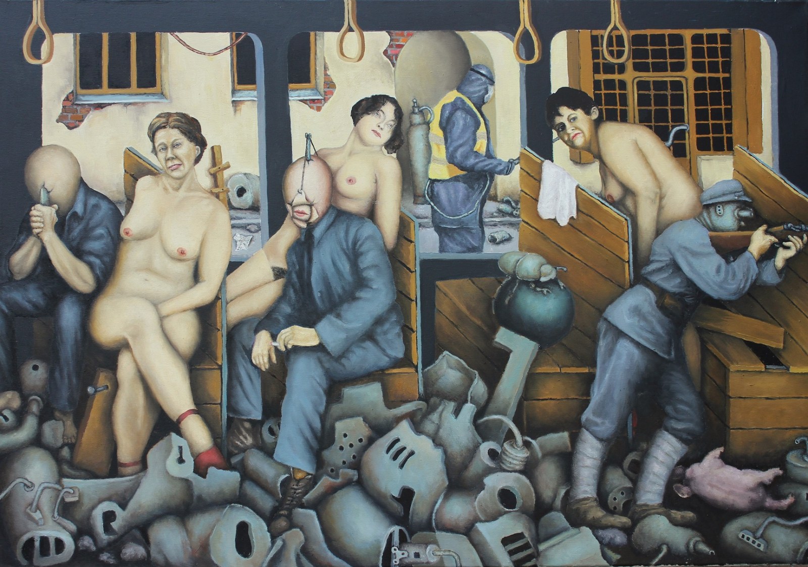 sygnowane, datowane, opisane na odwrociu: "Robert Gebethner, 2020 r., tyt – W pociągu, olej – 81 x 116 cm"