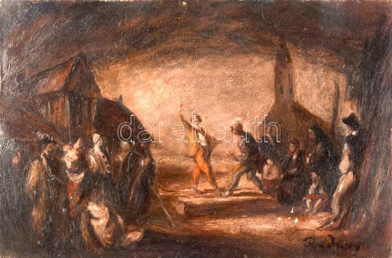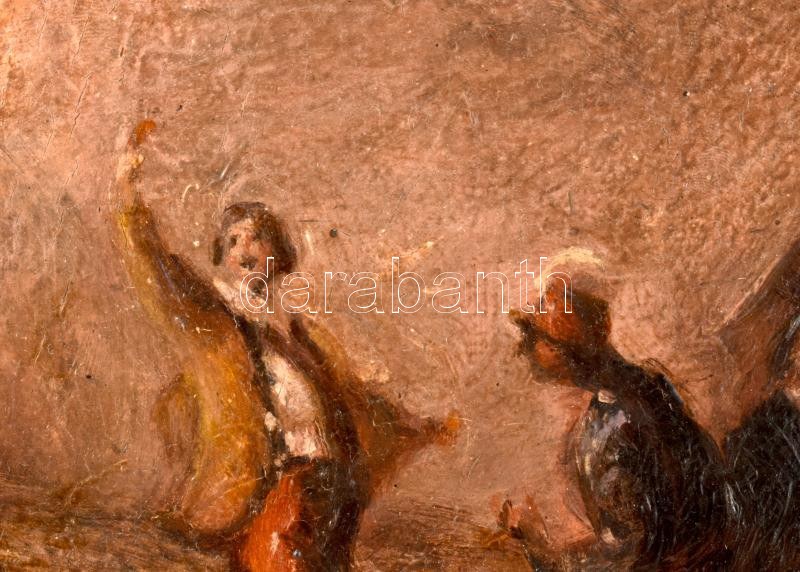Rudnay Gyula (1878-1957): Vándorszínészek. Olaj, karton, jelzett, restaurált, apró felületi sérülésekkel...