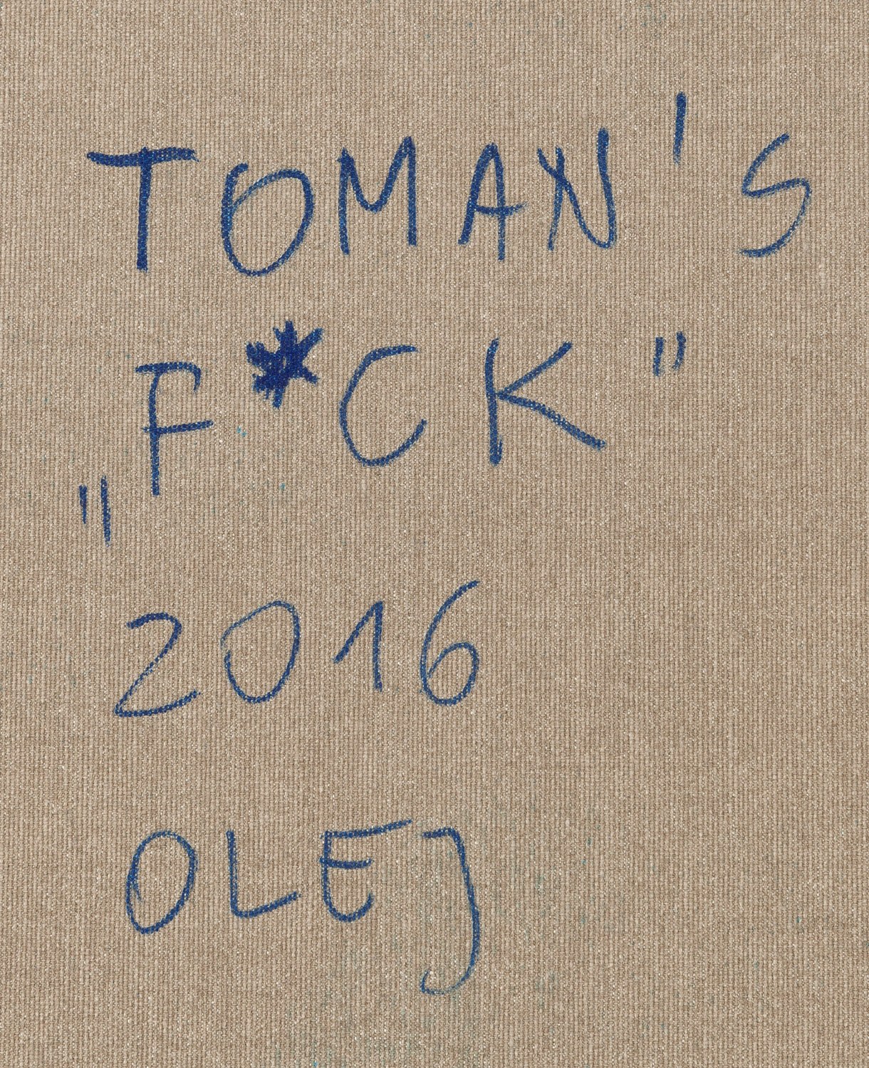 sygnowany, datowany i opisany na odwrociu: 'TOMAN'S | "F*CK" | OLEJ | 2016'