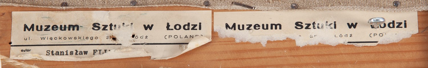 na odwrociu nalepki z Muzeum Sztuki w Łodzi, K.M.P. i K. "Ruch" Warszawa oraz z Desy