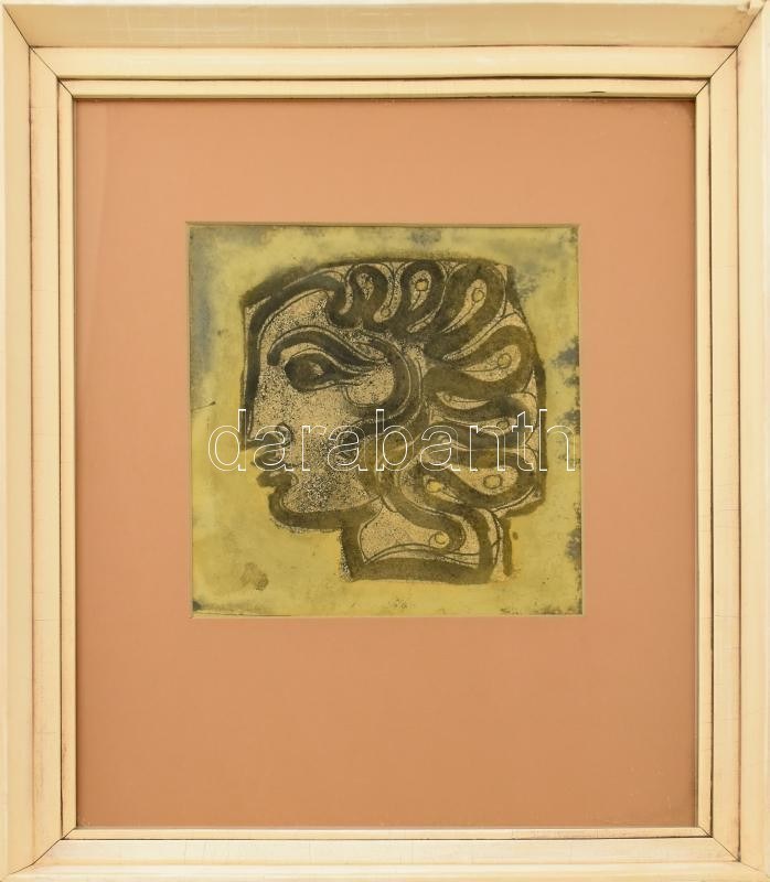 Szász Endre (1926-2003): Női portré. Vegyes technika, papír, jelezve jobbra lent. Üvegezett fa keretben. 22,5x22...