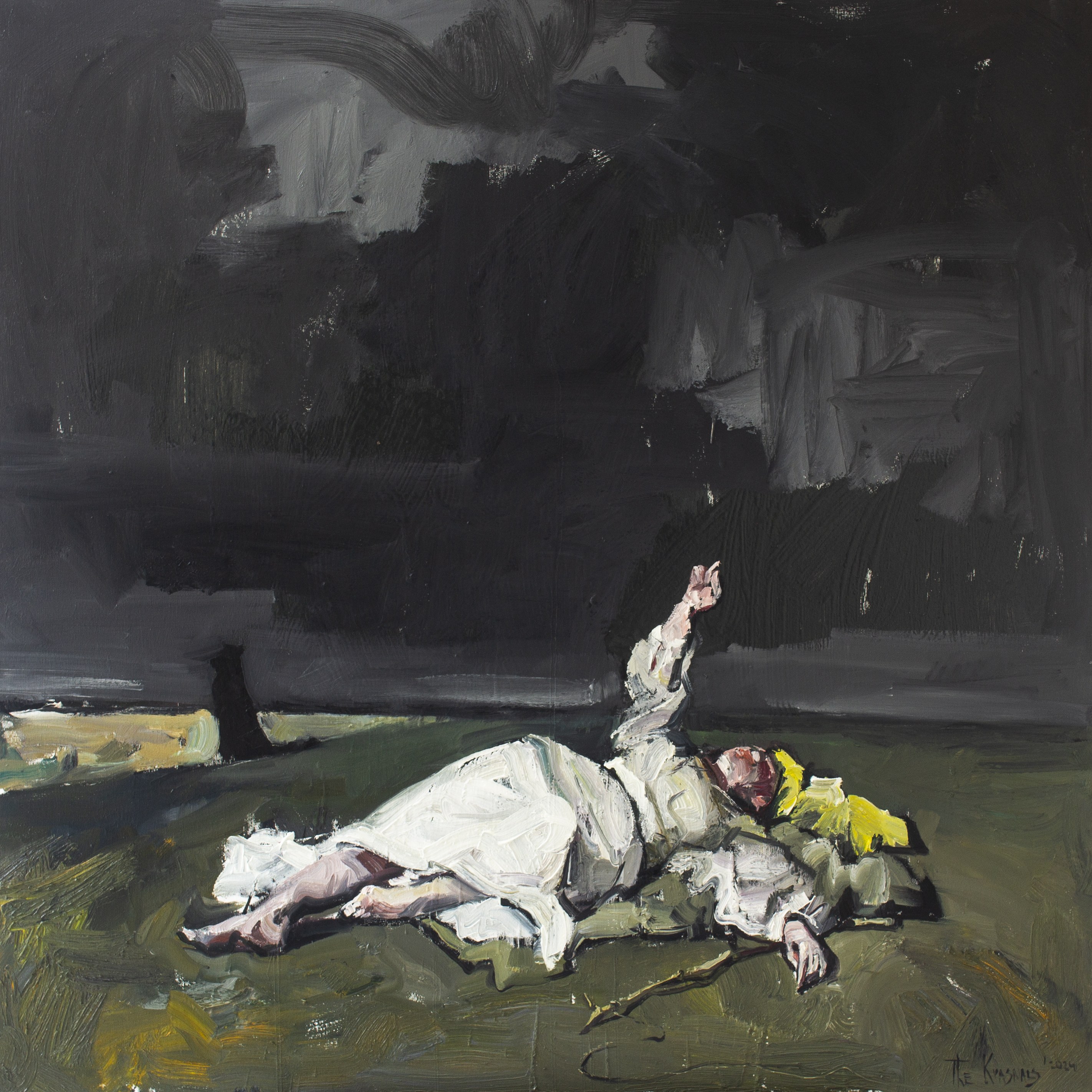 Olej na płótnie, 90 x 90 cm, sygn. na odwrociu
