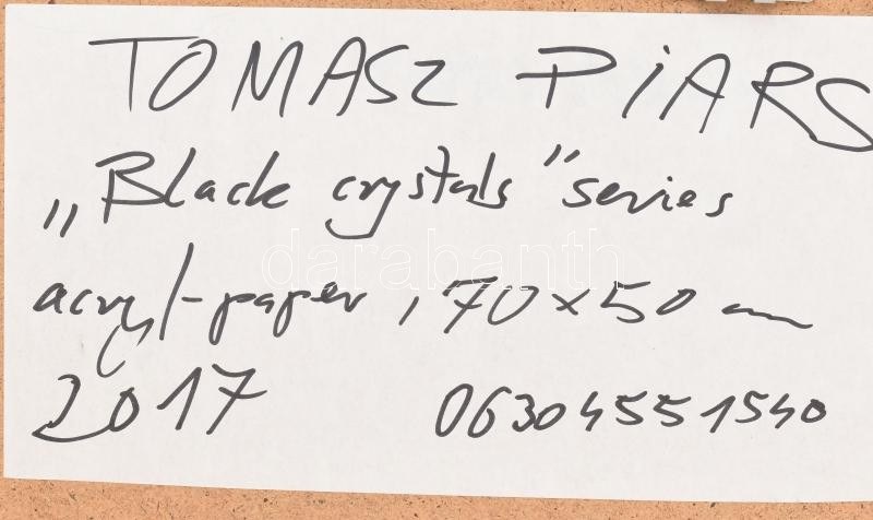 Tomasz Piars (1981-): Fekete kristályok sorozat ("Black crystals" series), 2017. Akril, papír, jelezve a hátoldalán. Plexiüvegezett keretben. 70×50 cm. / Tomasz Piars (1981-): "Black crystals" series, 2017. Acrylic on paper, signed on the reverse. Framed. 70×50 cm.