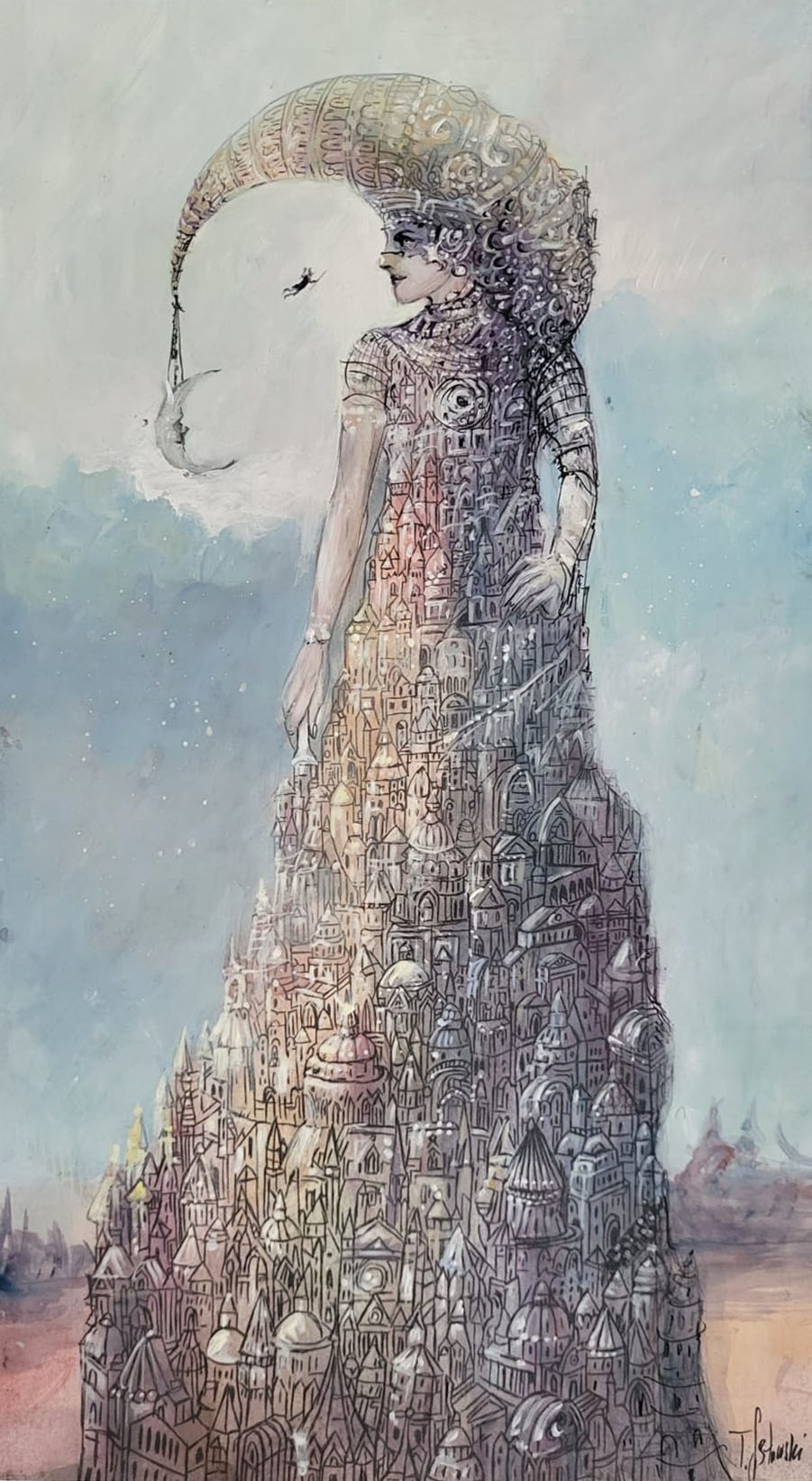 technika mieszana: akwarela, akryl, cienkopis, papier, 36 x 63 cm,