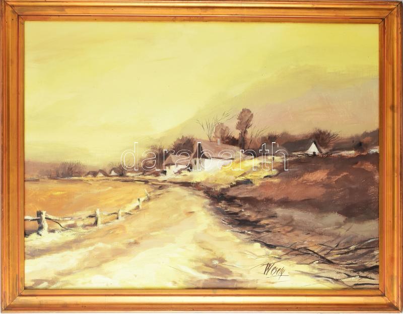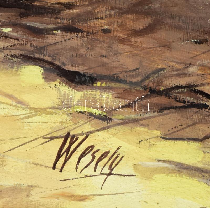 Wesely jelzéssel: Őszi táj. OLaj, farost, jelzett, dekoratív fa keretben 60x80 cm