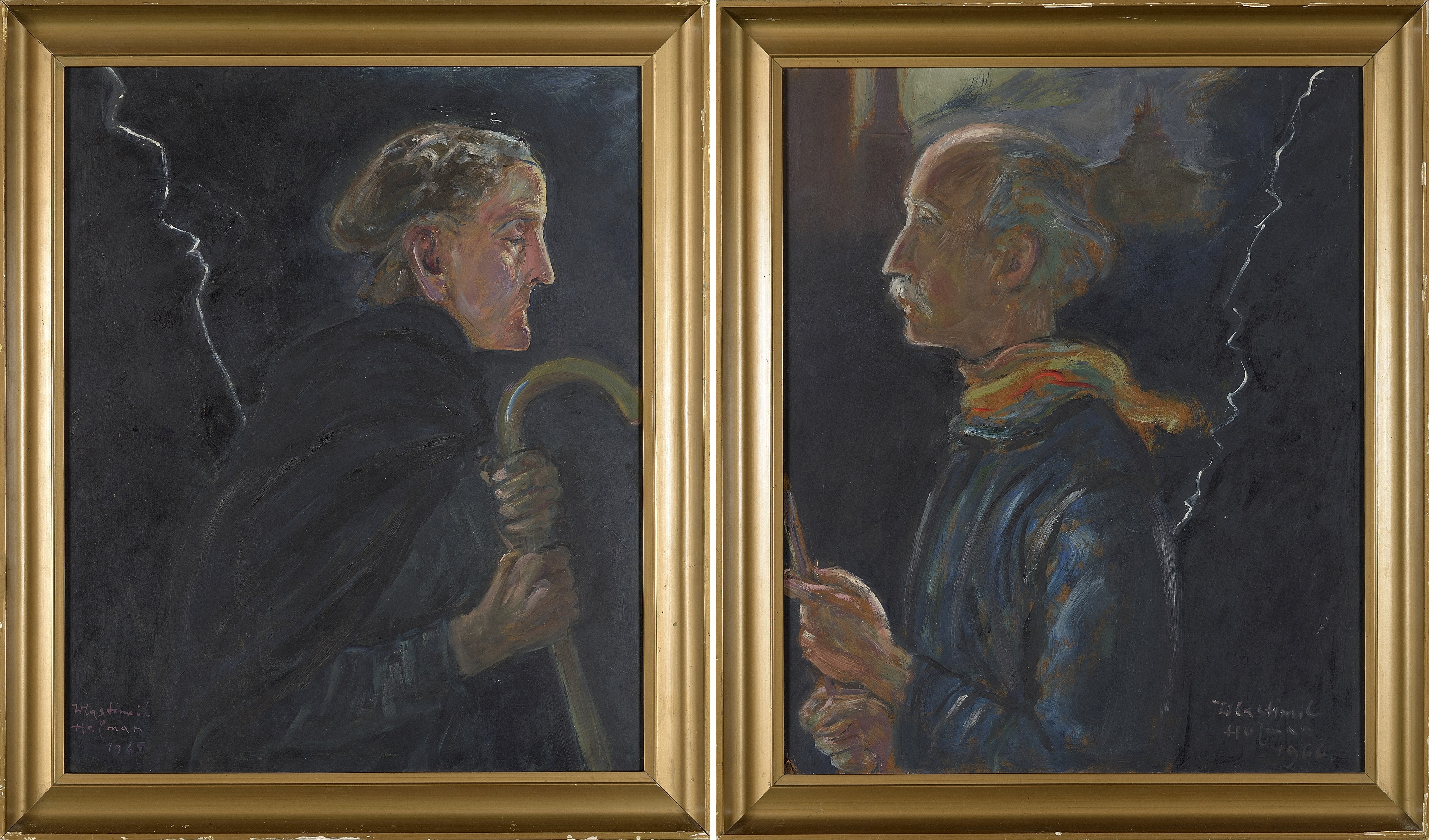 olej, płyta pilśniowa, 61 x 50 cm (oba),
