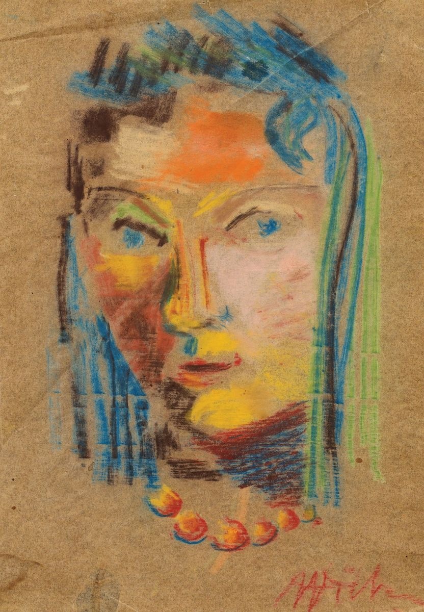 Pastel, papier beżowy naklejony na tekturę; 30,5 x 21 cm