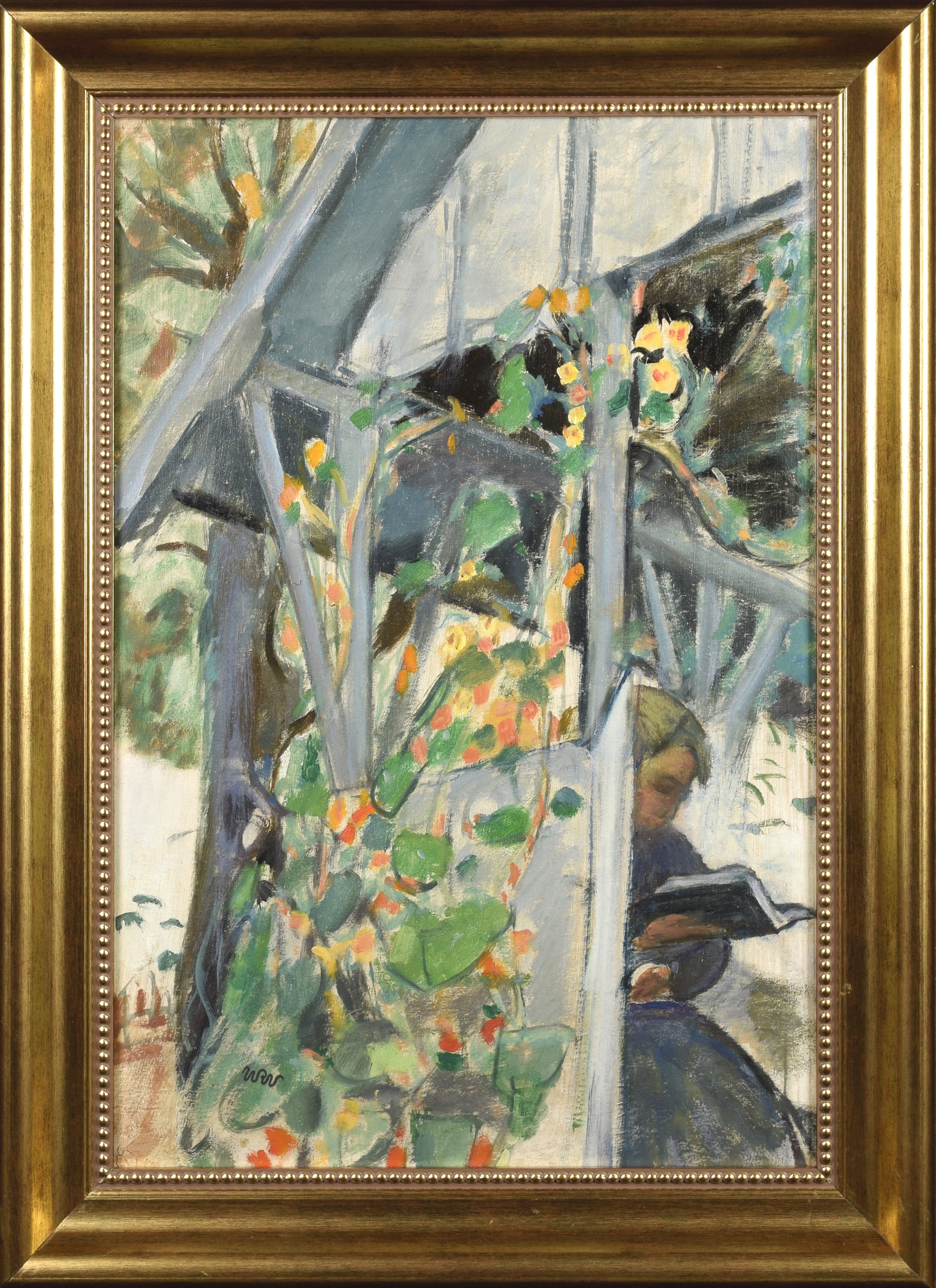 Wojciech WEISS (1875 - 1950), Żona artysty czytająca w altanie