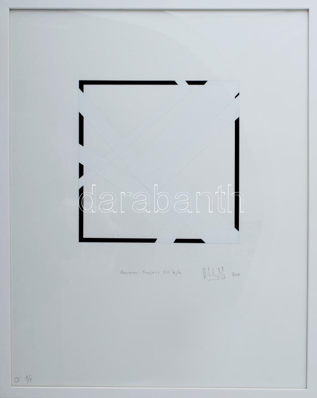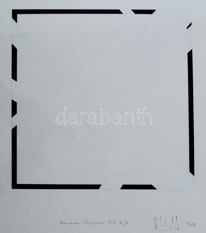 Wolsky András (1969-): Random-surface No. 4/A, 2021. Akril, kollázs, papír, jelzett. Üvegezett fakeretben. 21x21 cm...