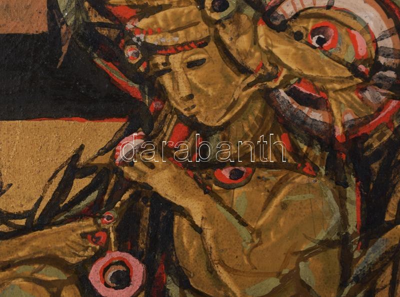Xantus Gyula (1919-1993): Faunok délutánja. Akril, farost. Jelezve jobbra lent, hátoldalán autográf felirattal és Szőnyi István Alkotóközösség címkéjével. Fakeretben. 50x70 cm / acrylic on fibre board, signed, with autograph description on the reverse, framed
