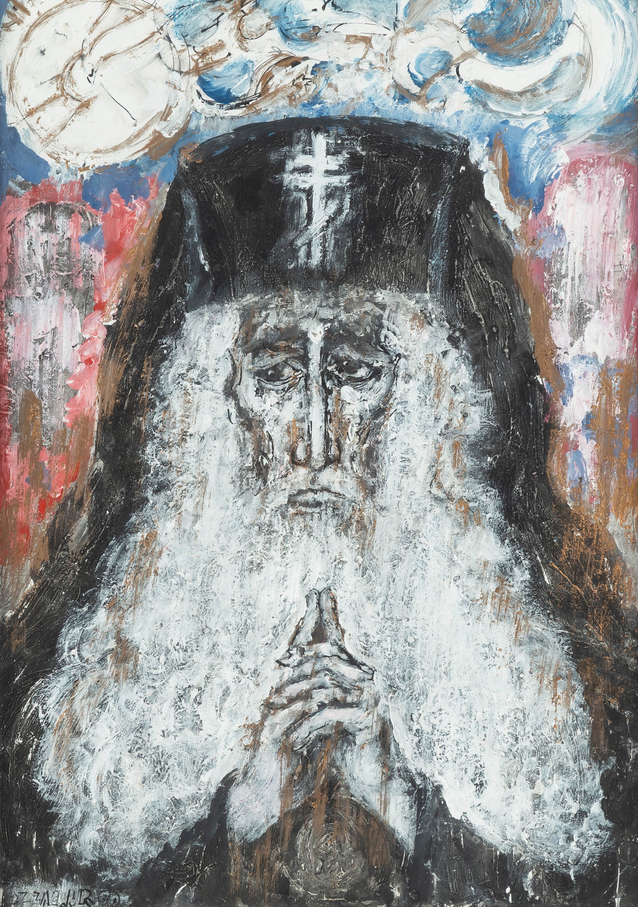 olej, papier, 41 x 29 cm, syg. i dat. l.d.: Z. LACHUR 90, na odwrocie opisany, sygn. i dat.: Kapłan / prawosławny / Mal. Lachur / 1990