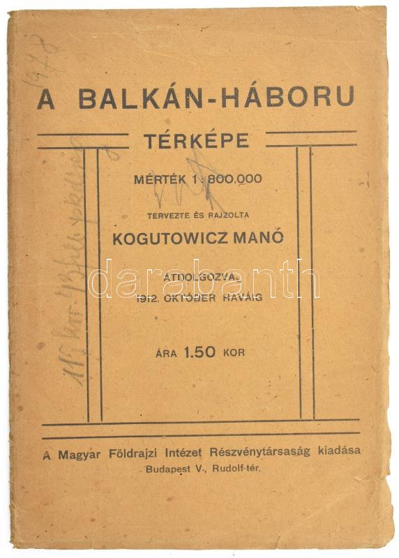1912 A Balkán-háború térképe, 1:800.000, tervezte és rajzolta: Kogutowicz Manó, Bp., Földrajzi Intézet Rt....