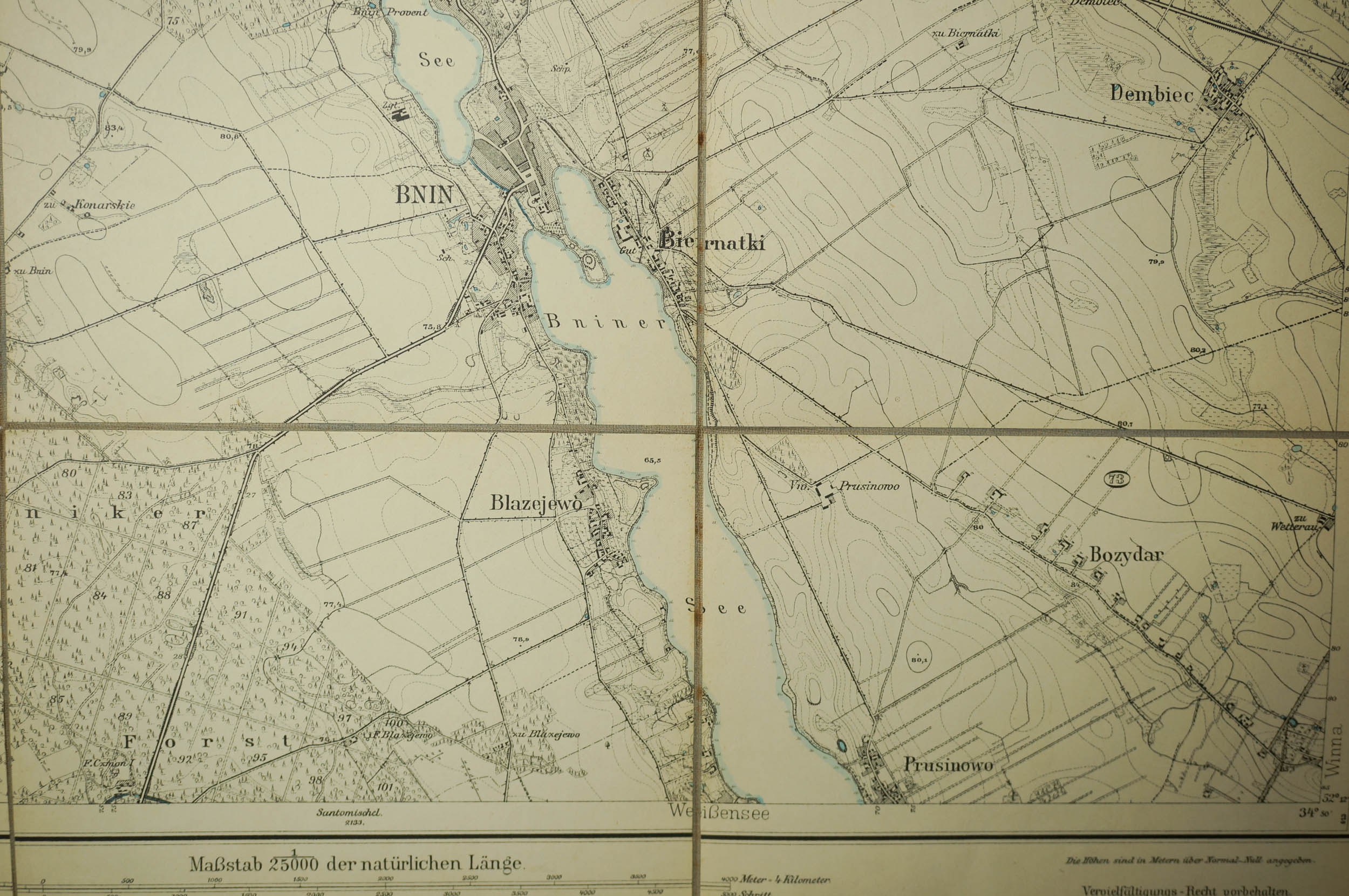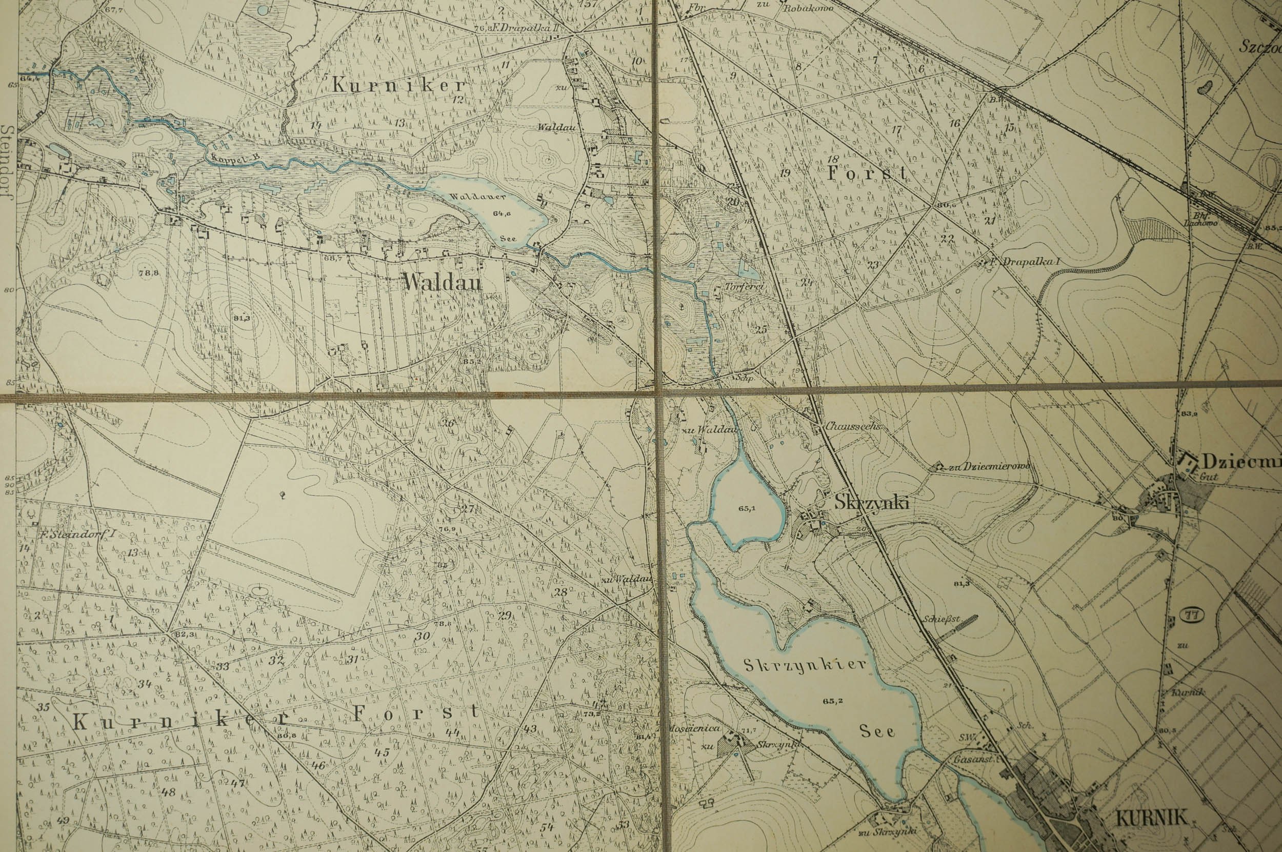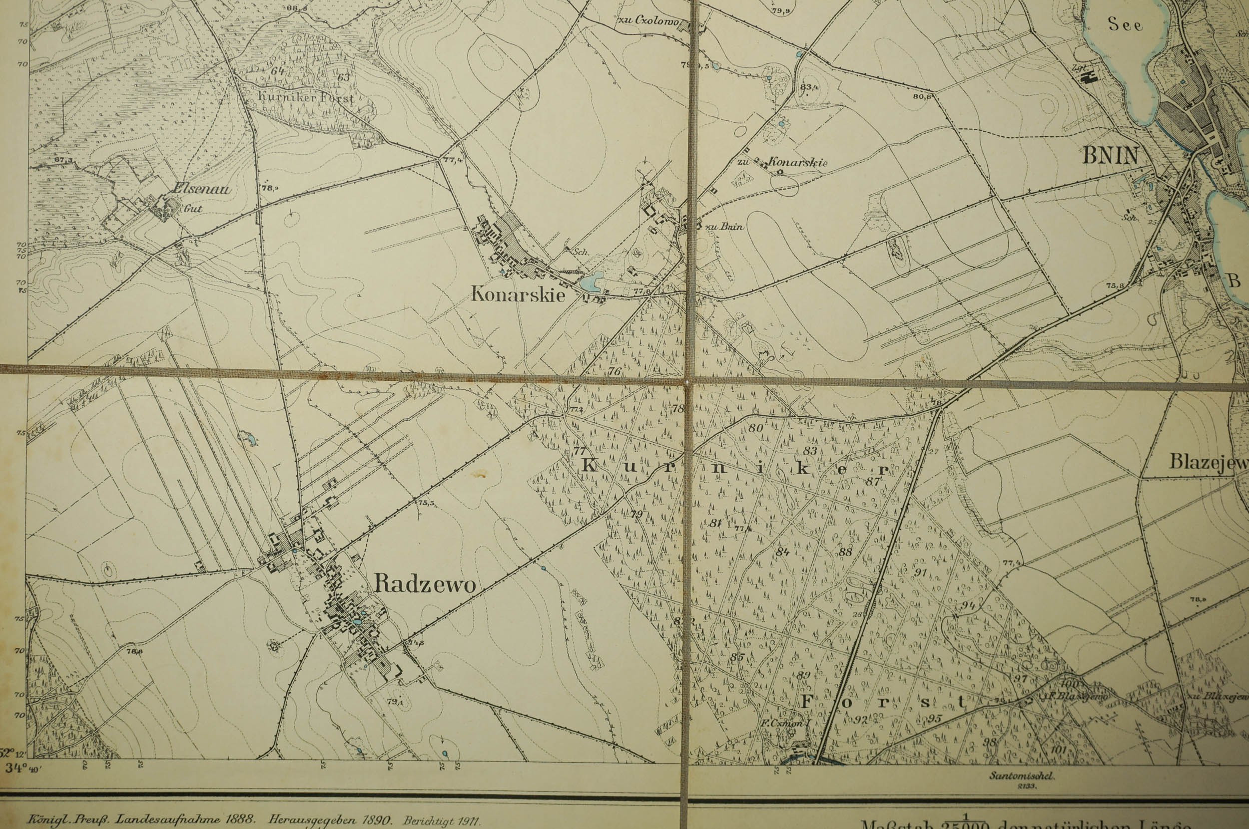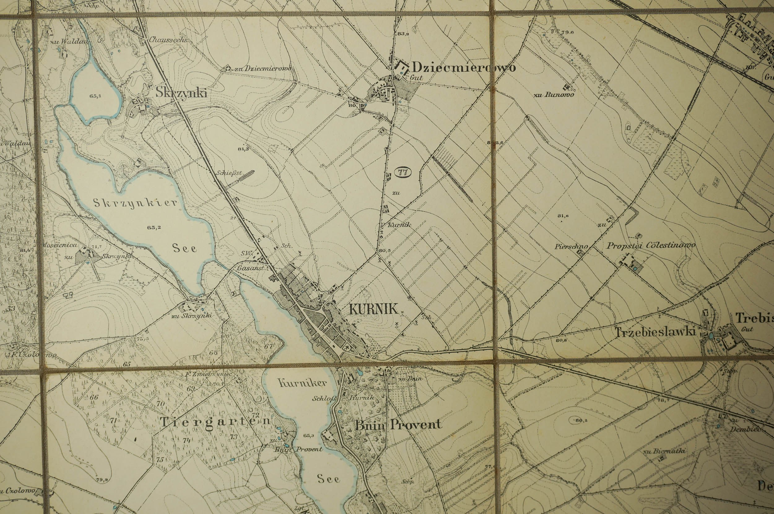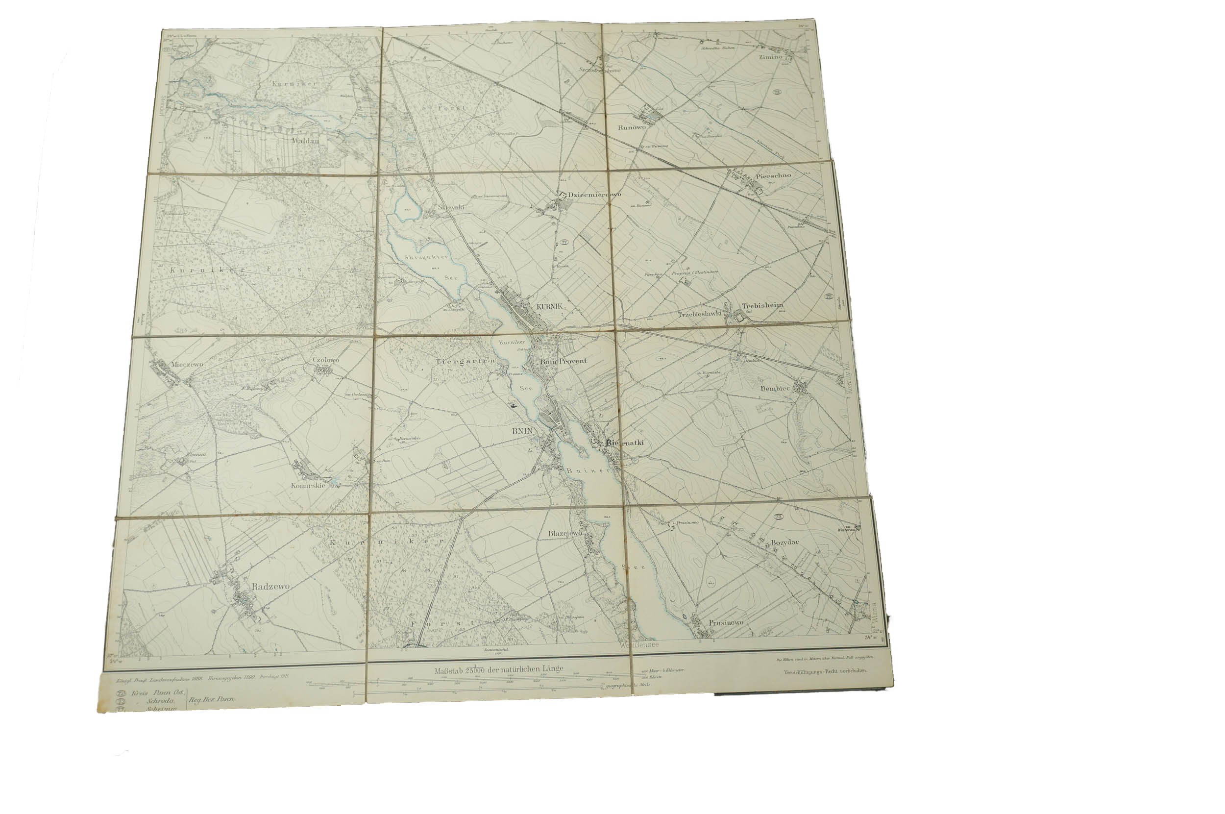 KÓRNIK / Kurnik - mapa na płótnie [1911r.], skala 1: 25.000, f. 48 x 49cm, na podstawie mapy z 1888r. z poprawkami z 1911 roku