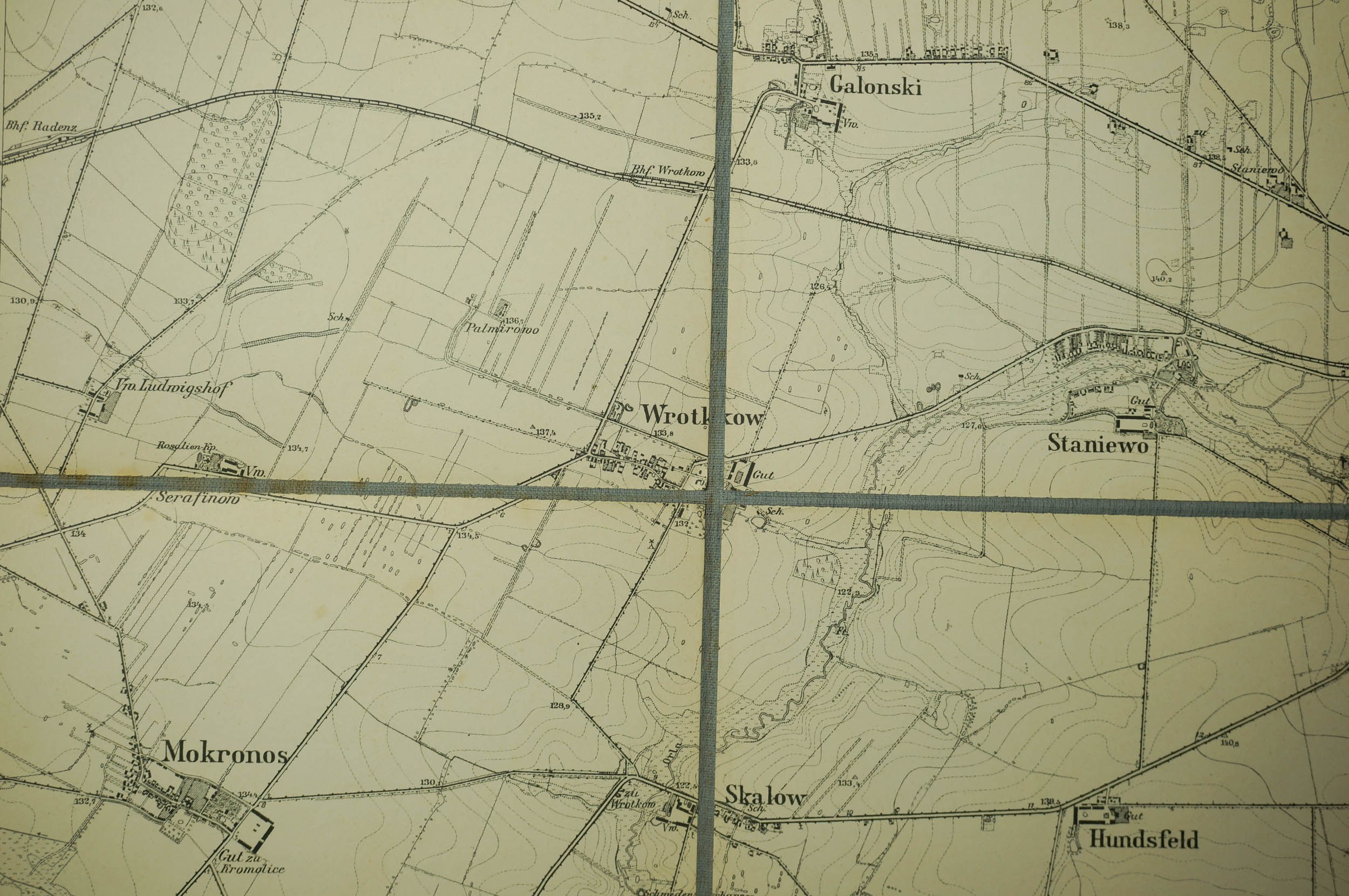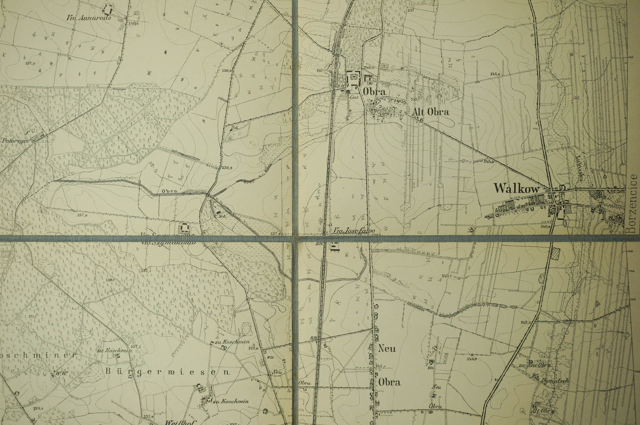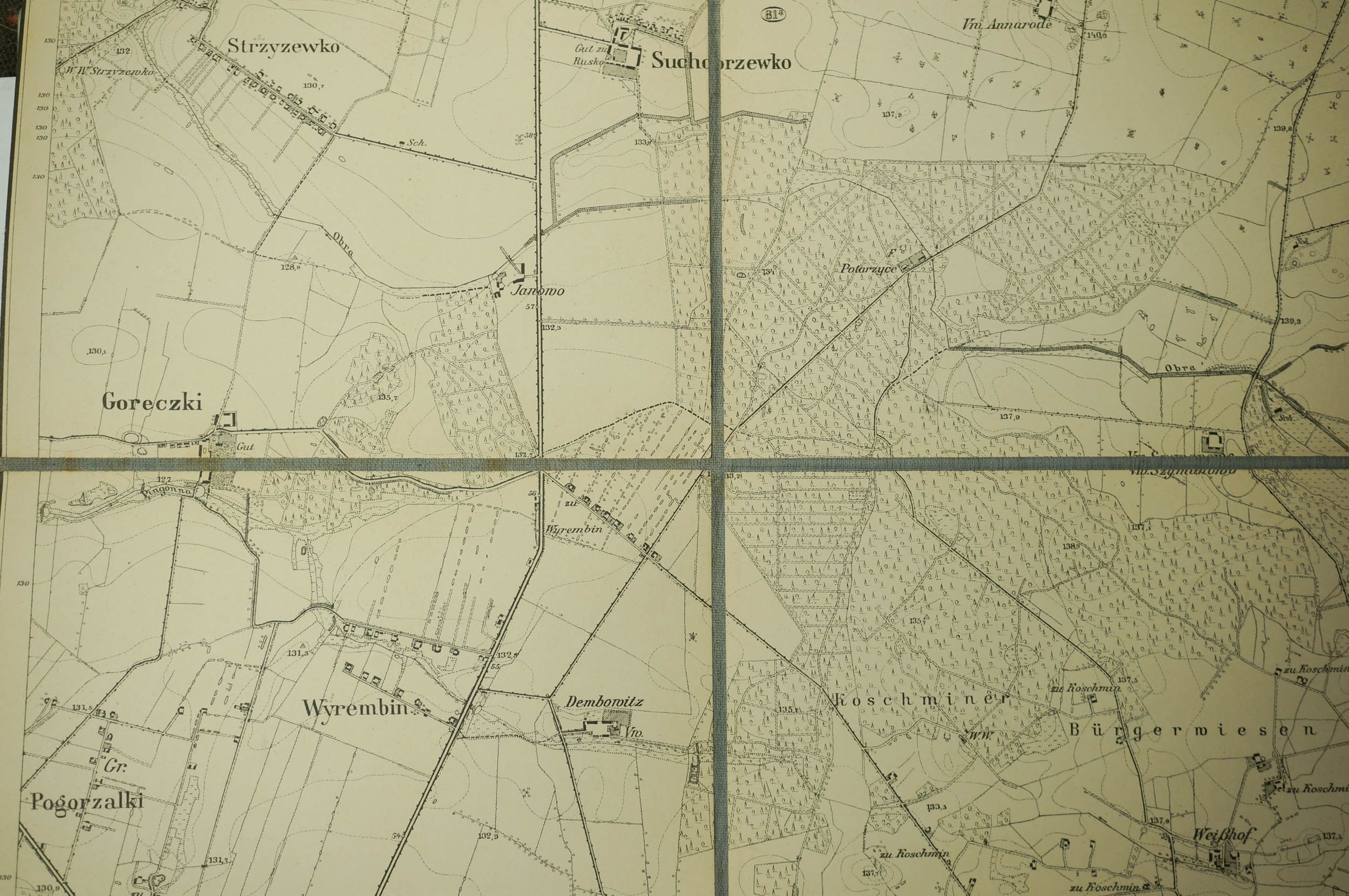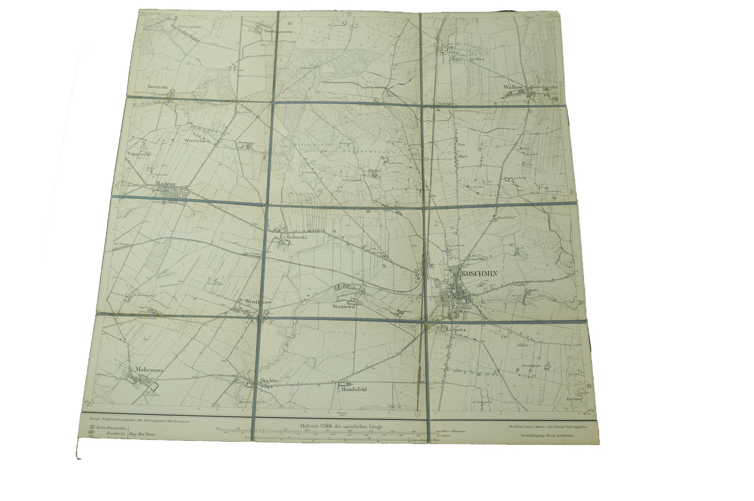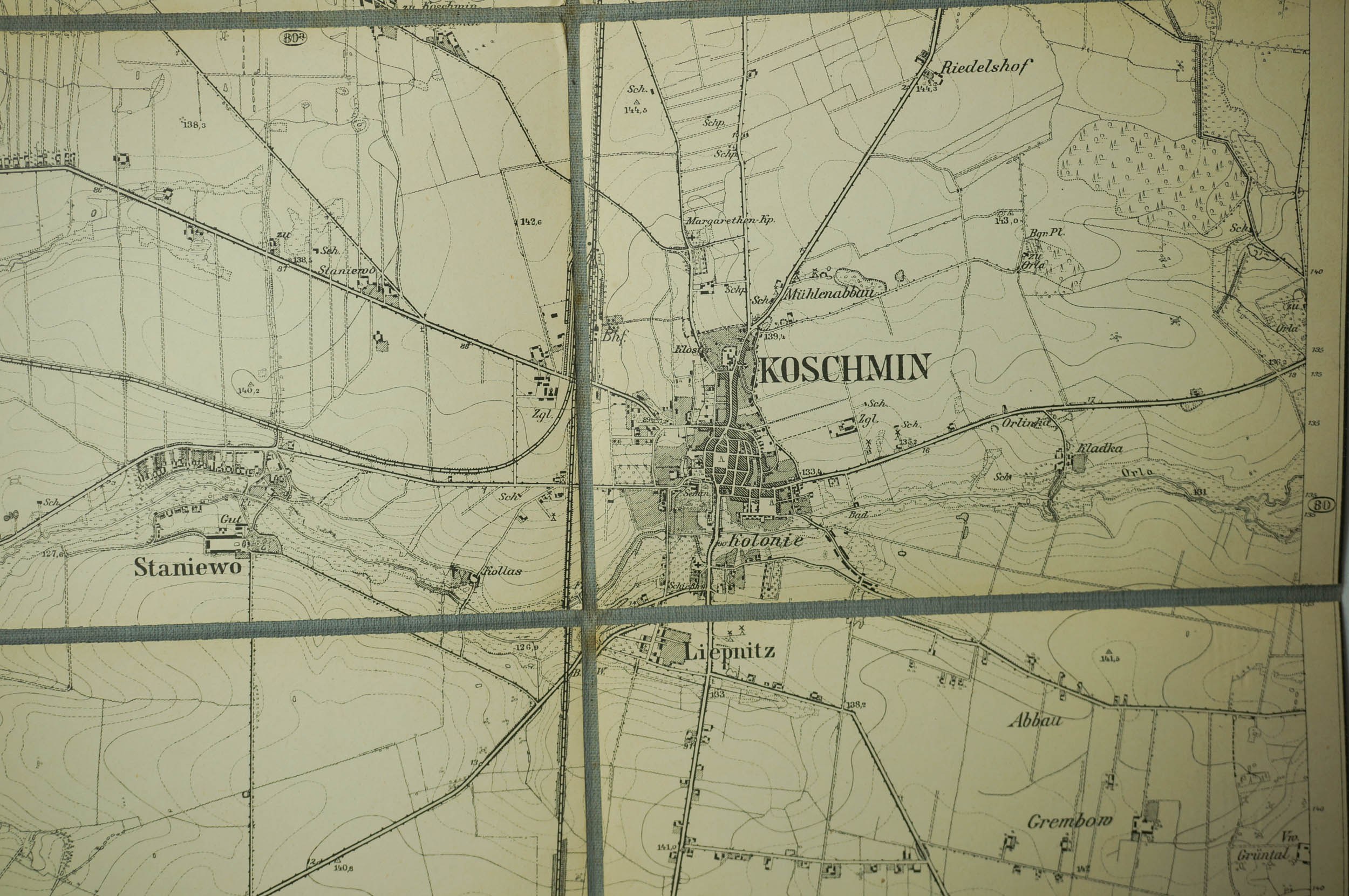 KOŹMIN WIELKOPOLSKI / Koschmin - mapa na płótnie [1911r.], skala 1: 25.000, f. 48 x 49cm, na podstawie mapy z 1887r., z poprawkami z 1911r.
