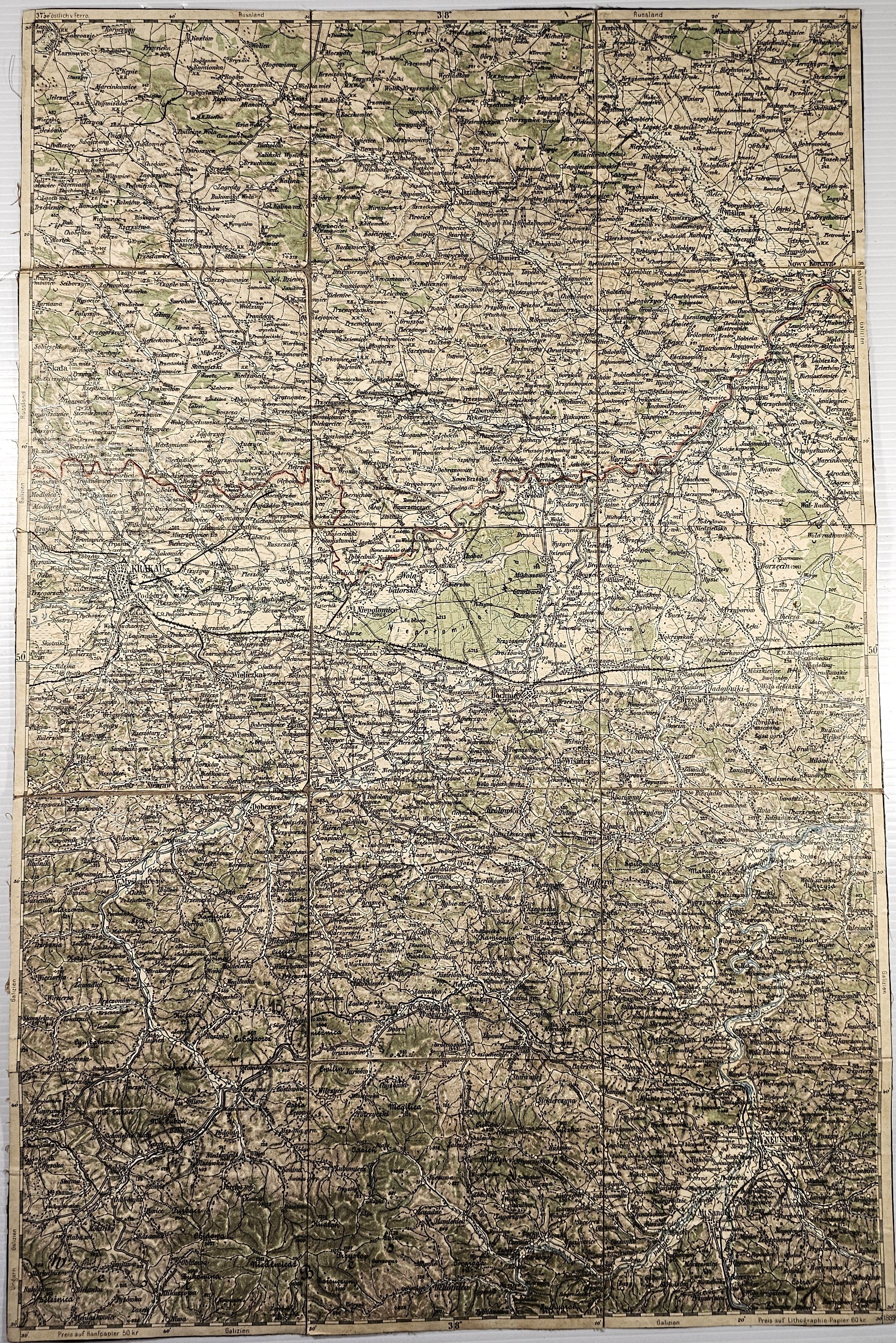 Wym. ok.: 37,5 x 56,5 cm, złożona na 15 elementów. Mapa naklejona na płótno, stan bardzo dobry. Rzadszy pionowy wariant.