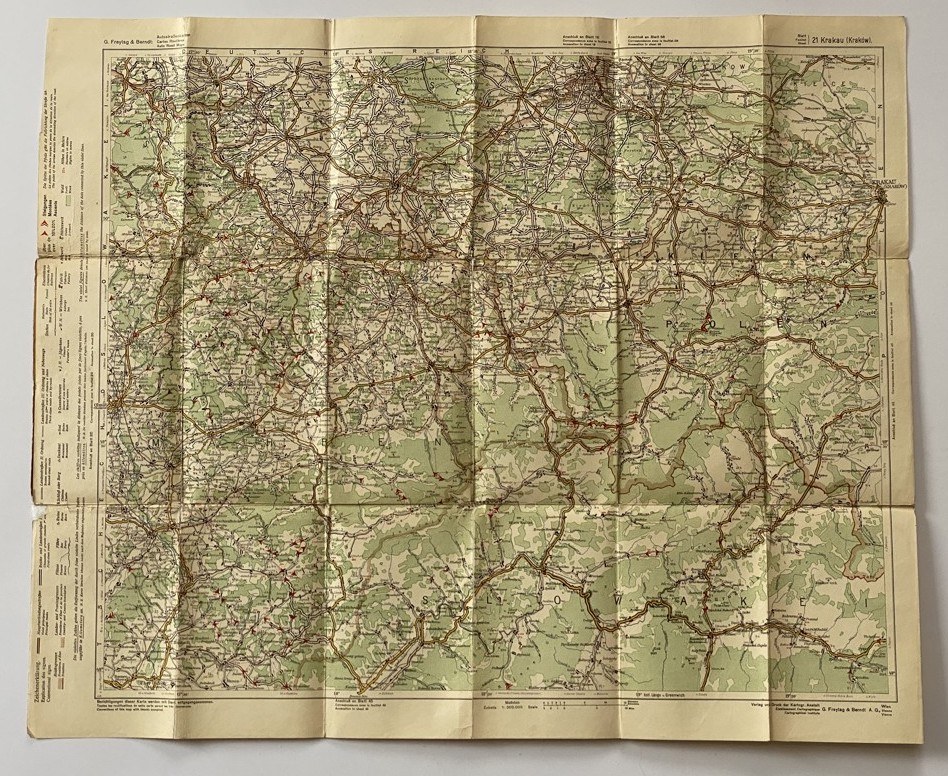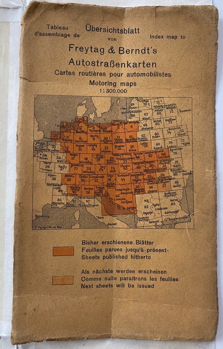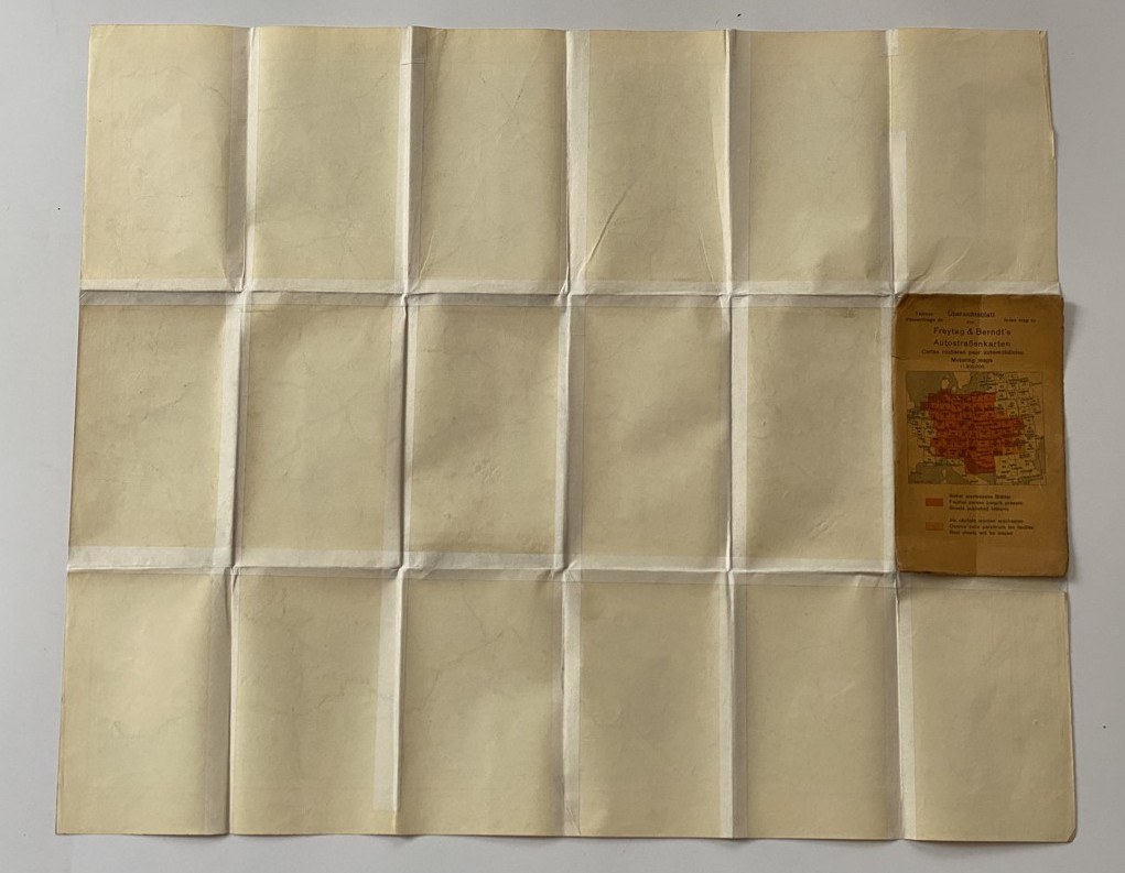 Ubersichtsblatt Freytag & Bernt`s Autostrassenkarten, wymiary 59 x 72 cm, łamy podklejone papierem.