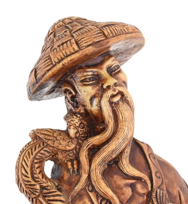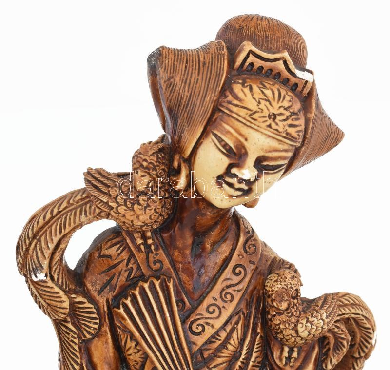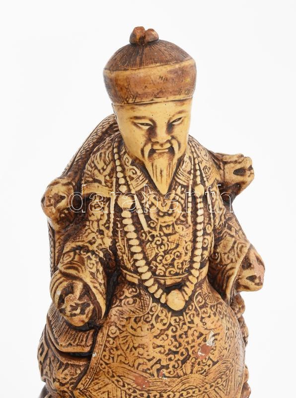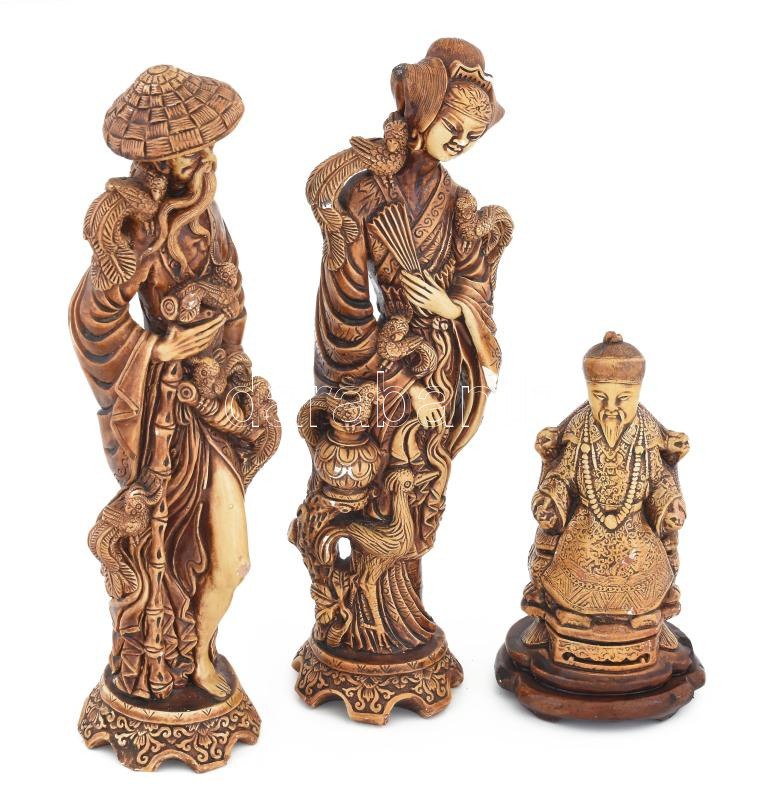 3 darab részletgazdag festett gipsz keleti kerámia szobor, kis lekopásokkal, m: 22-39 cm