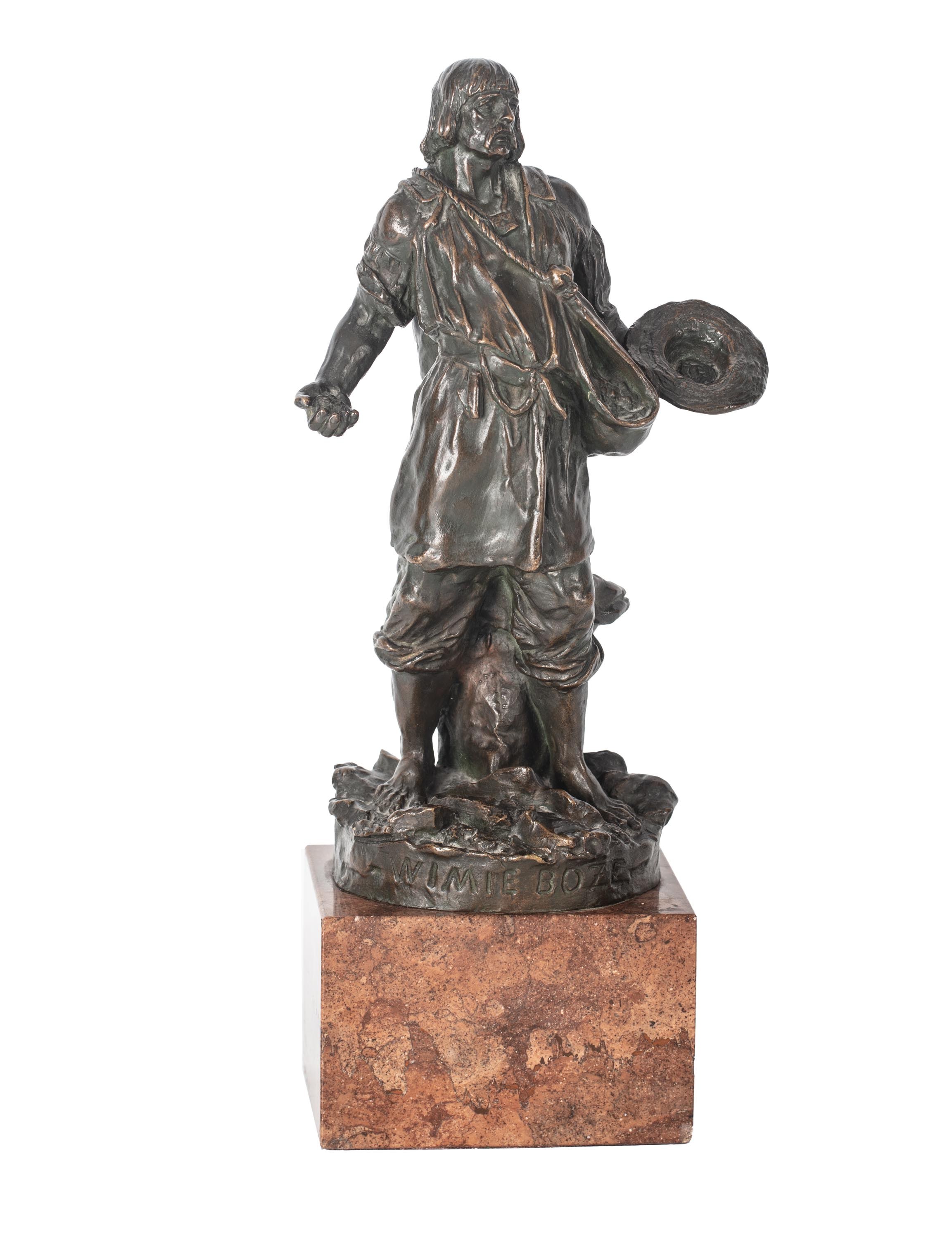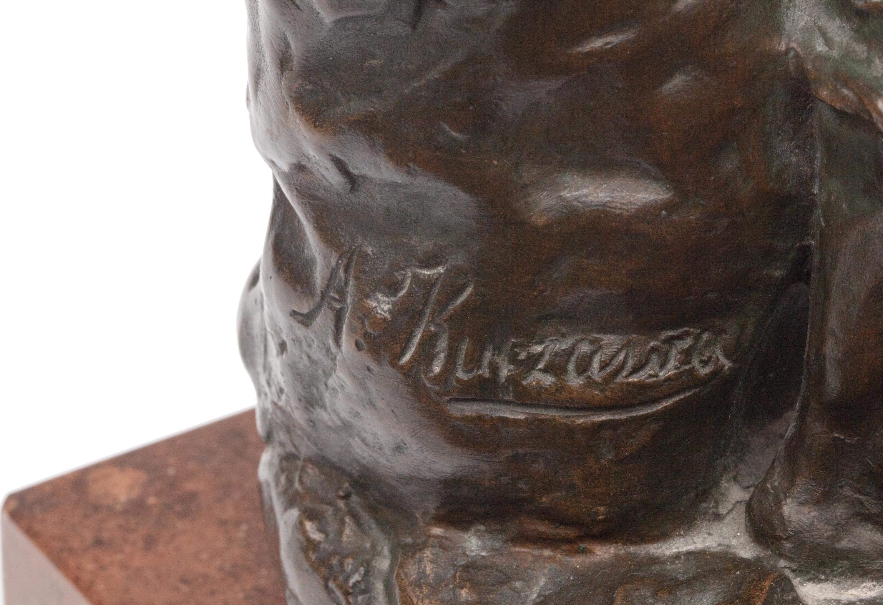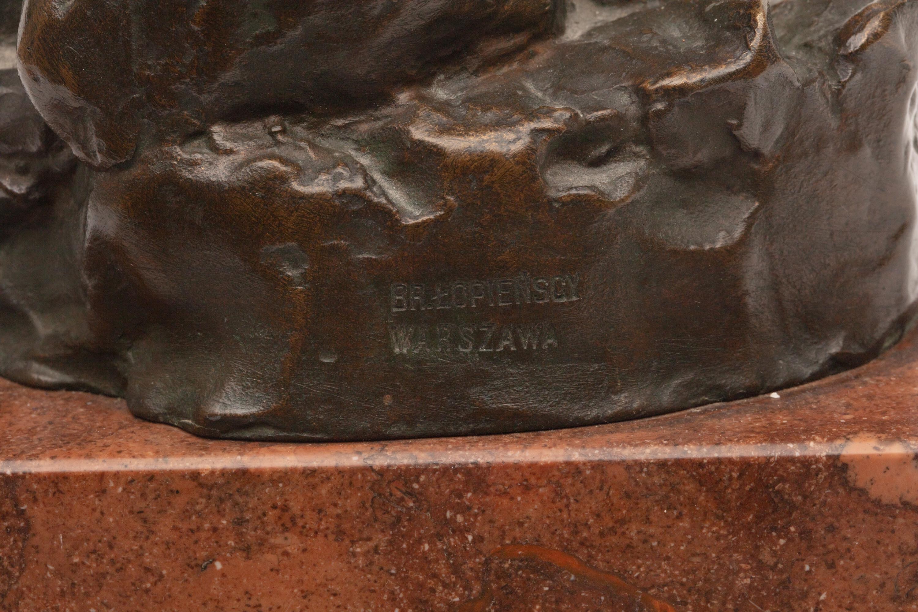 brąz, marmur, wys. samej rzeźby: 30 cm wys. całkowita: 38,5 cm sygn.: „A.Kurzawa” znak odlewni: “BR.ŁOPIEŃSCY WARSZAWA”. napis: „W IMIE BOŻE”