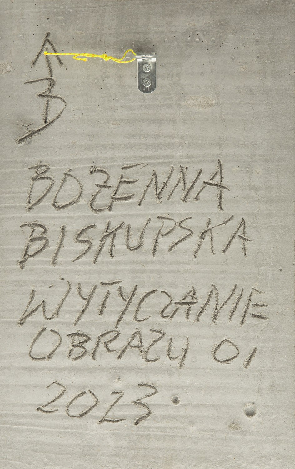 sygnowany, datowany i opisany z tyłu: '[instukcja zawieszania] | BOŻENA | BISKUPSKA | WYTYCZANIE | OBRAZU 01 | 2023'