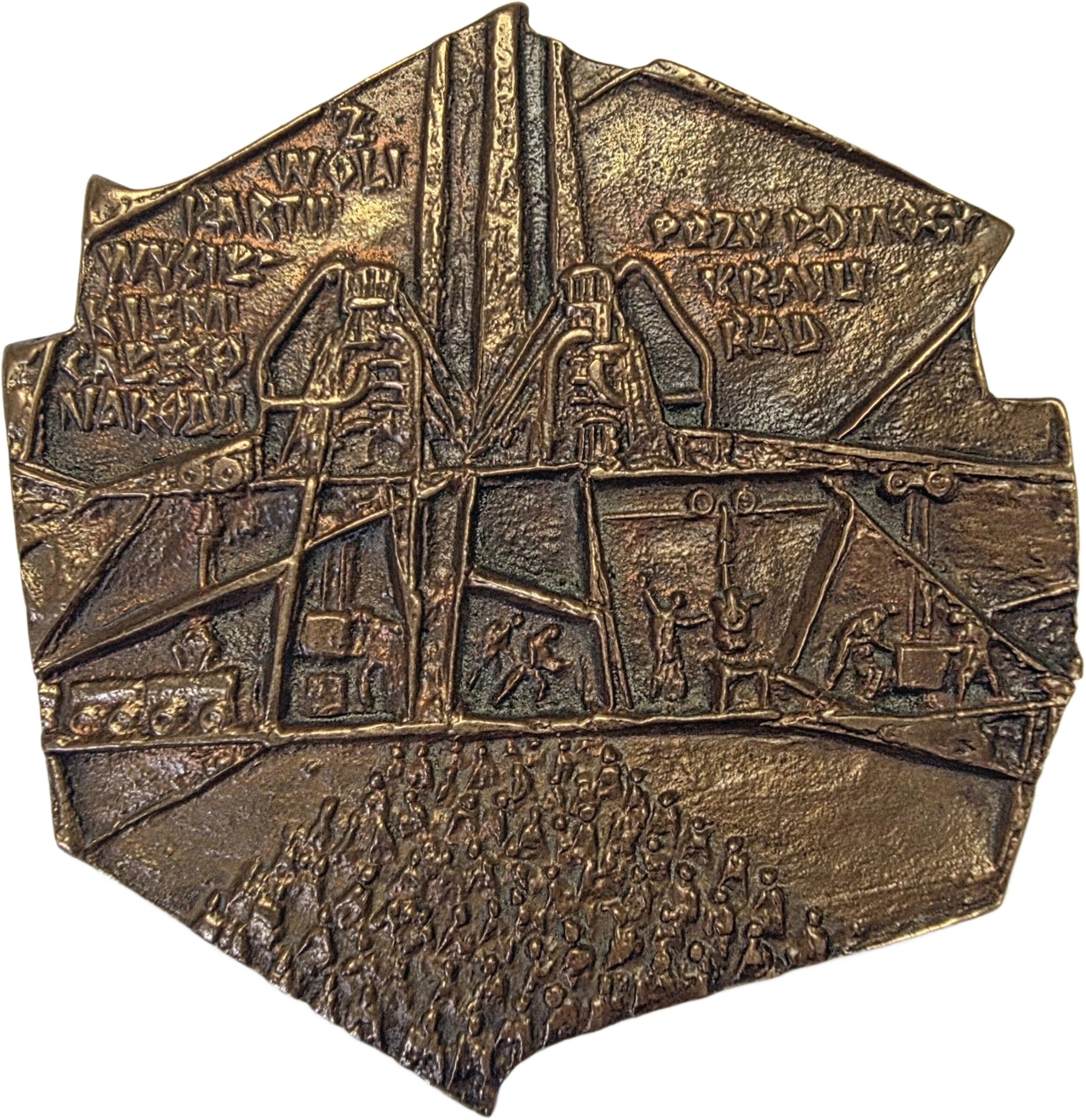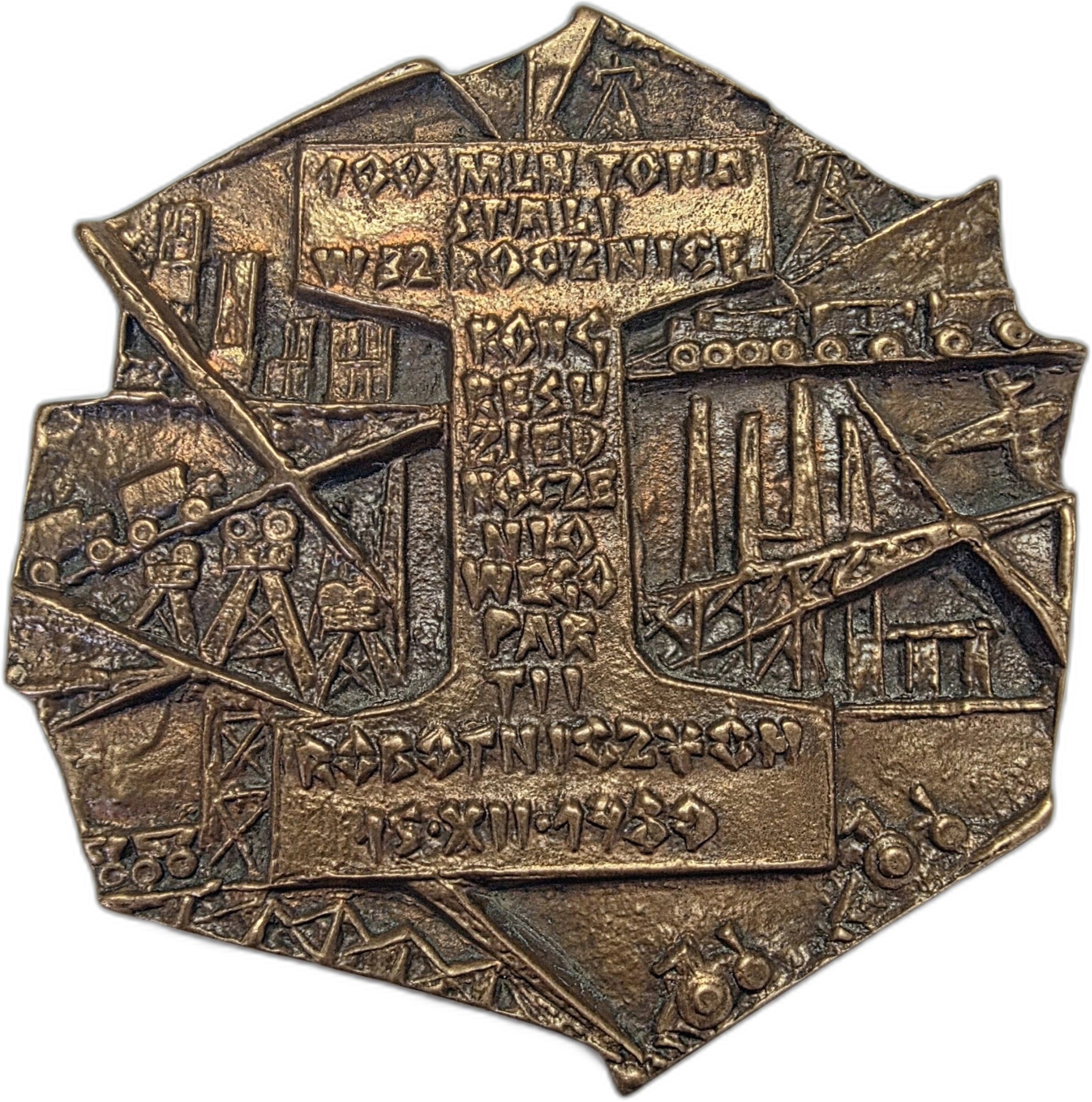 Medal z brązu 10 x 10 cm: 100 MLN TON STALI w 32 ROCZNICE KONGRESU ZJEDNOCZENIOWEGO PARTII ROBOTNICZYCH 15.XII.1980