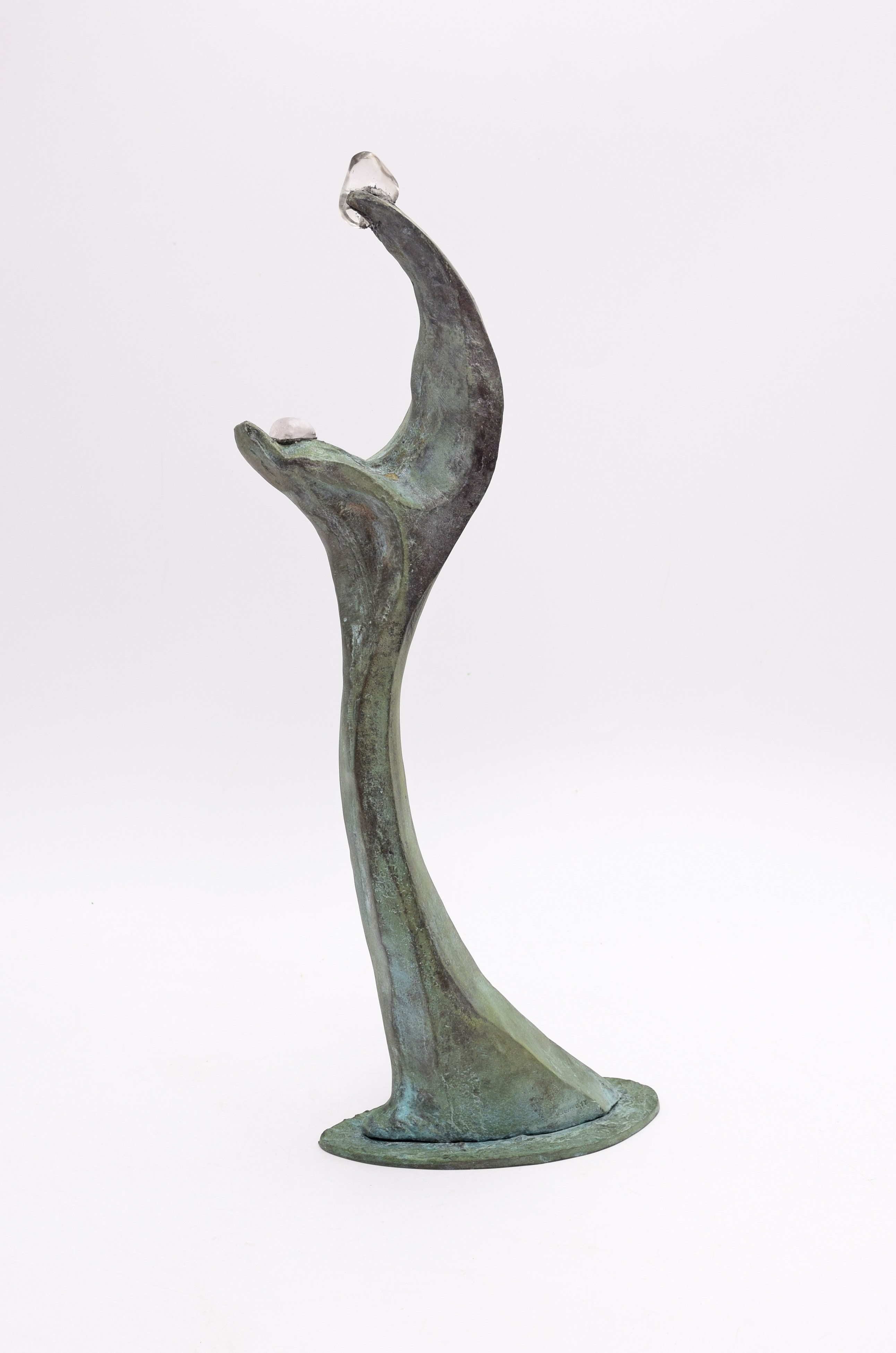 brąz patynowany, kryształ górski; wys. 40 cm;