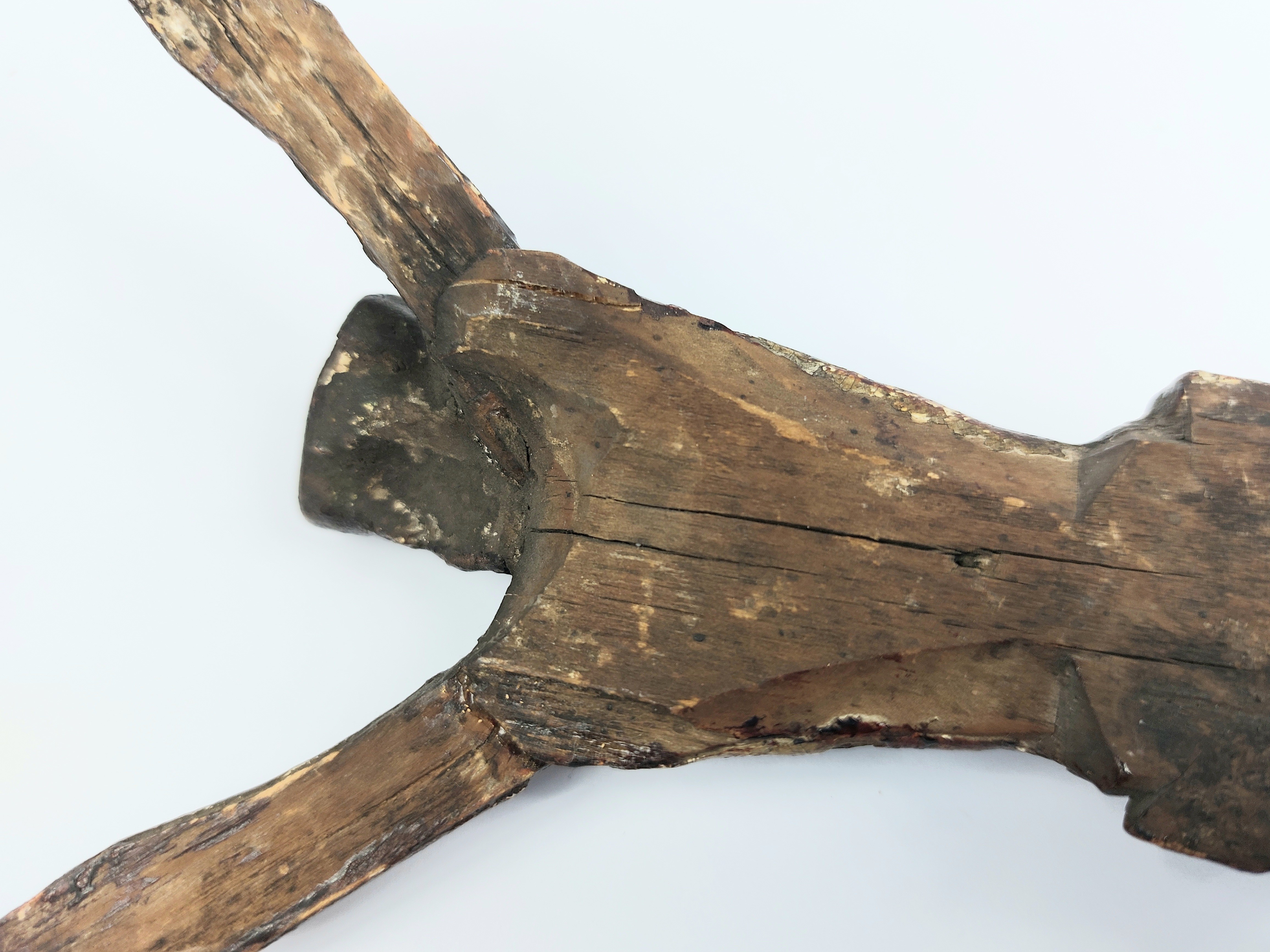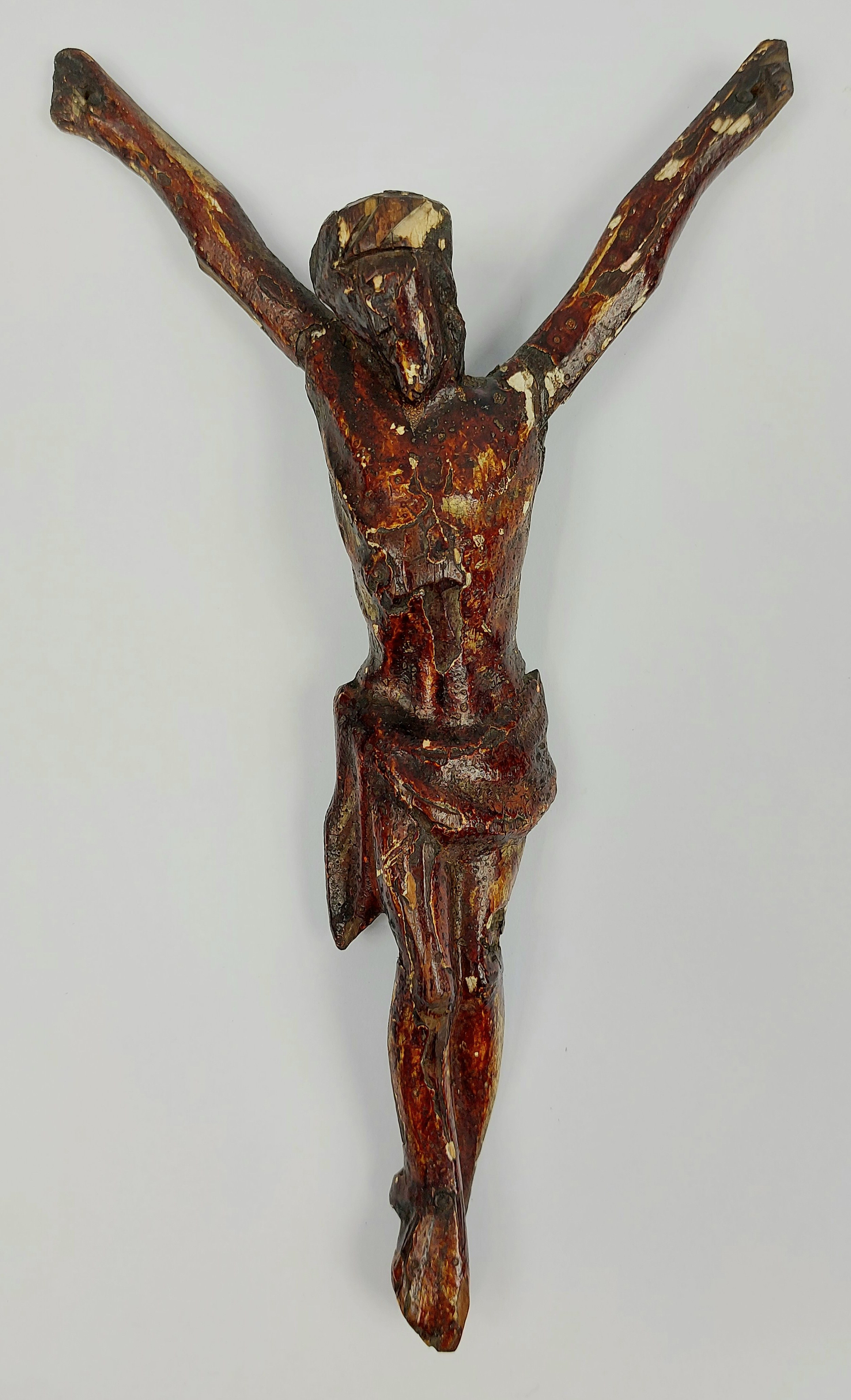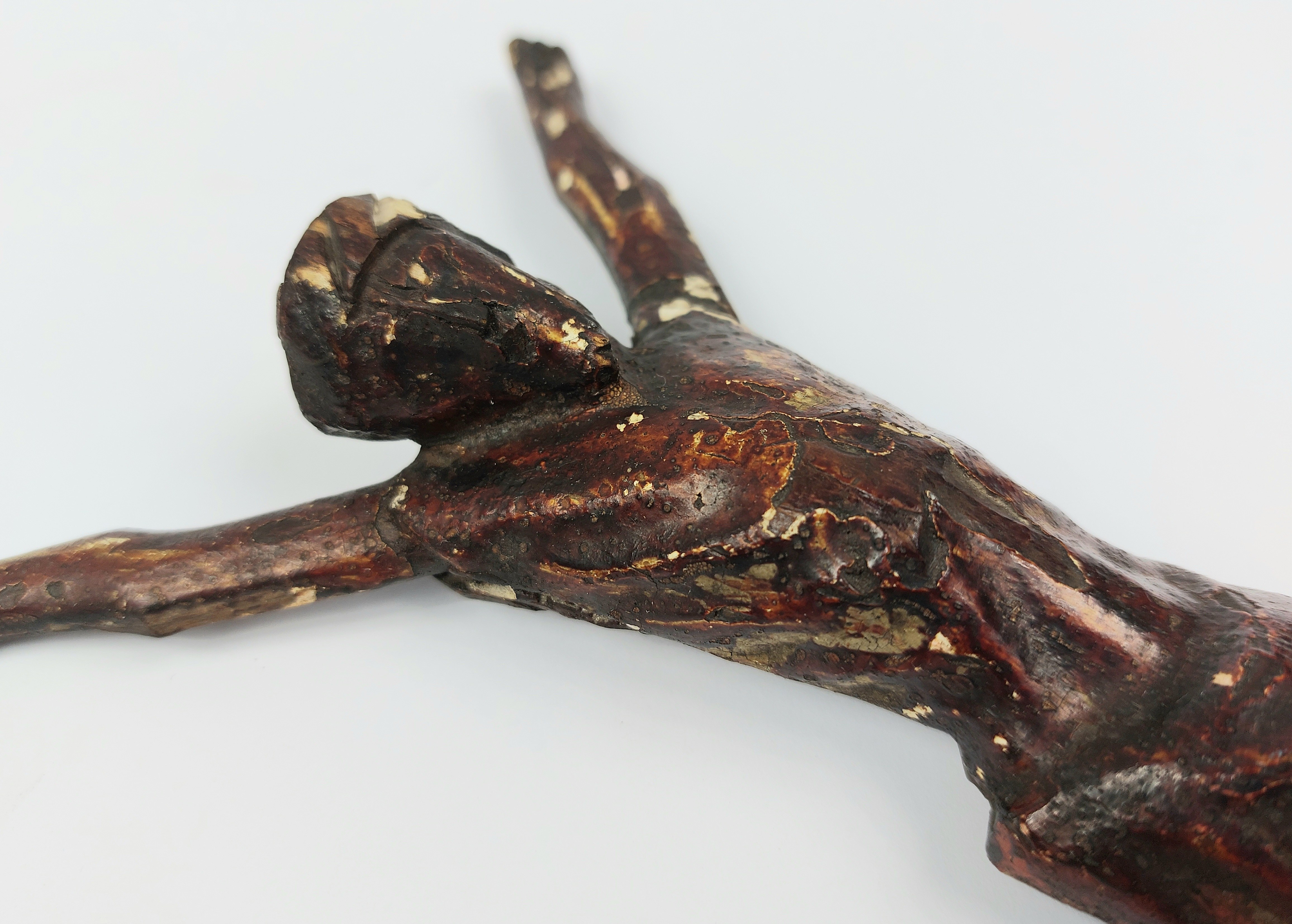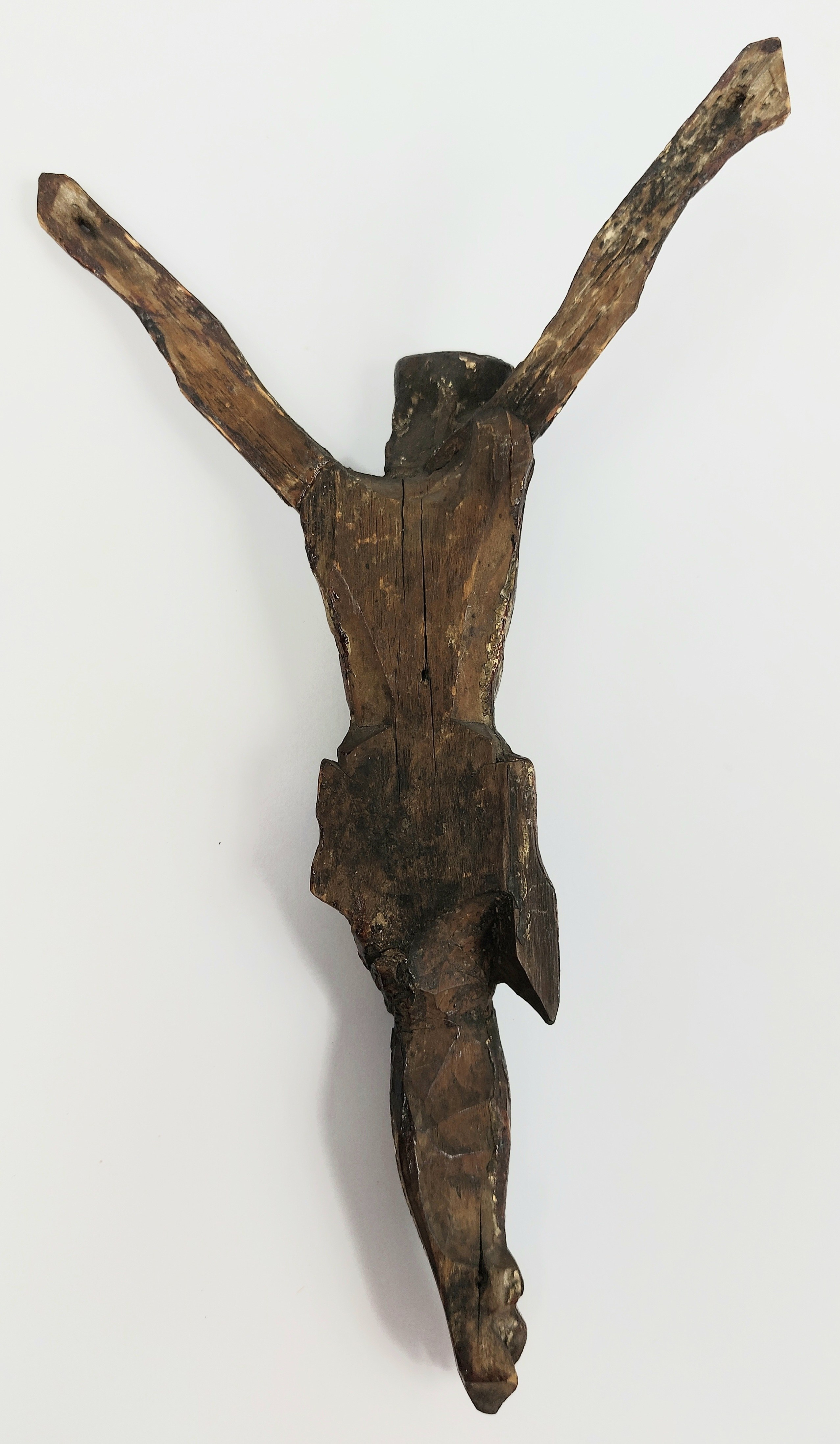 odpryski farby, naturalne spękania, rozpiętość otworów w dłoniach ok 11,5 cm