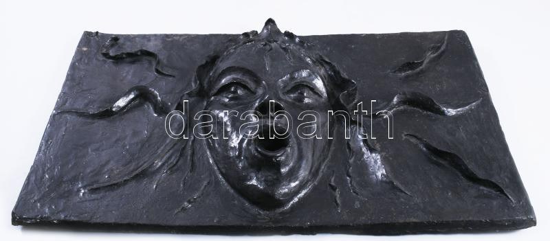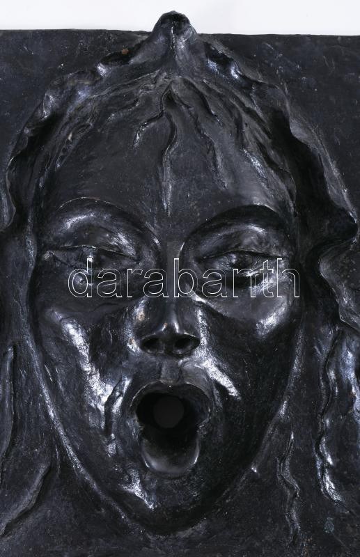 Horetzky (1969-): Medúza fej vízköpő. Patinázott bronz faliplakett, falikútnak is felszerelhető, cca 2005, jelzés nélkül, 28x47 cm. Proveniencia: az alkotó tulajdonából. /// Horetzky (1969-): Medusa Head Gargoyle. Patinated bronze wall plaque, can also be installed as a wall fountain, circa 2005, unsigned, 28 x 47 cm. Provenance: from the artist's own collection.