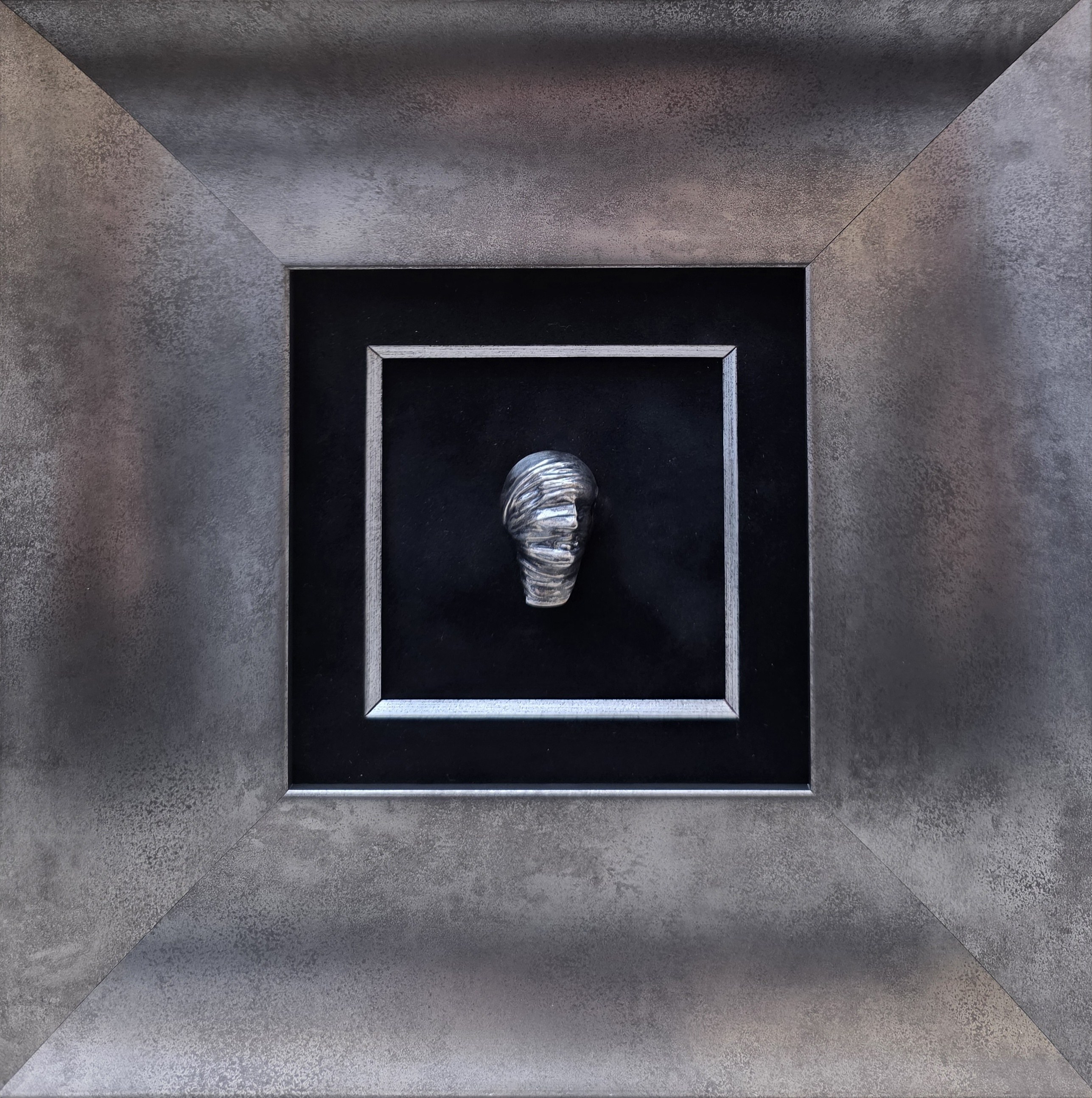 Metal srebrzony, 4 x 3 cm, w oprawie 28 x 28 cm