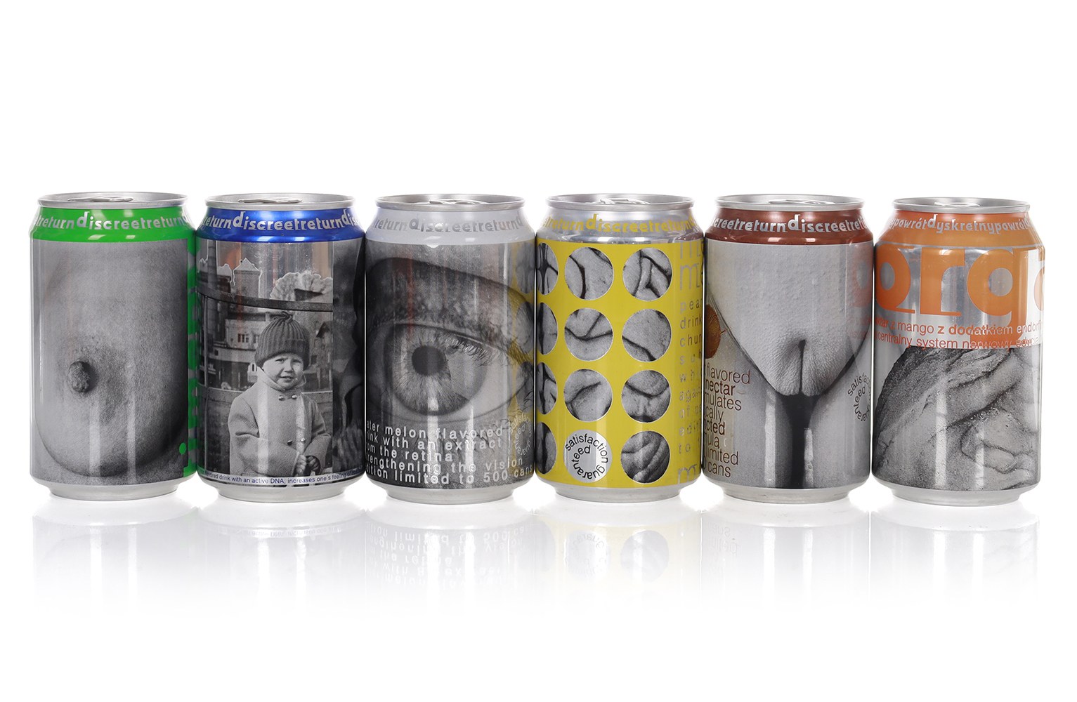sześć puszek o pojemności 0,33 litra, wys.: 11,5 cm; śr.: 6 cm. seria produktów konsumpcyjnych wypełnionych płynami zawierającymi wydzieliny ciała artystki. Do pozycji dołączona broszura oraz pocztówka.