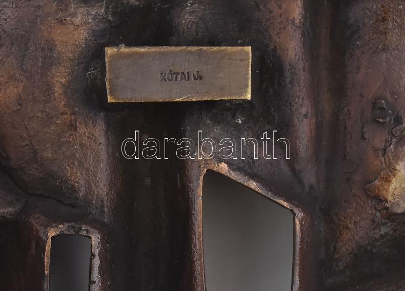 Kótai József (1940-): Hajó. Jelzett, bronz, 17x14 cm