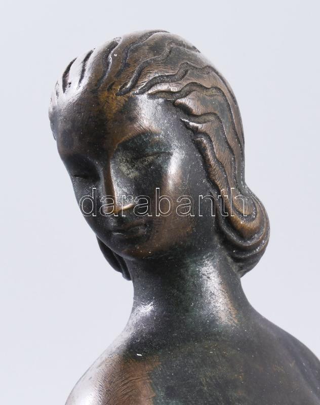 Liszkay Kováts Zoltán (1898-1967): Akt őzikével. Art deco patinázott bronz szobor, márvány talapzaton, cca 1930/40, jelzett hátul: "Z. KOVÁTS" hibátlan, m: 26 cm /// Zoltán Liszkay Kováts (1898-1967): Nude with Fawn. Art Deco patinated bronze sculpture on a marble base, circa 1930/40, signed on the back: "Z. KOVÁTS", in perfect condition, height: 26 cm.