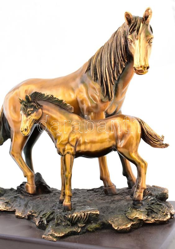 Ló csikójával. Műgyanta szobor préselt fa talpazaton, jelzés nélkül, kis kopással...