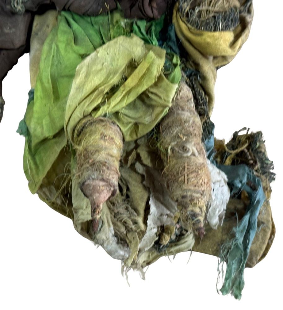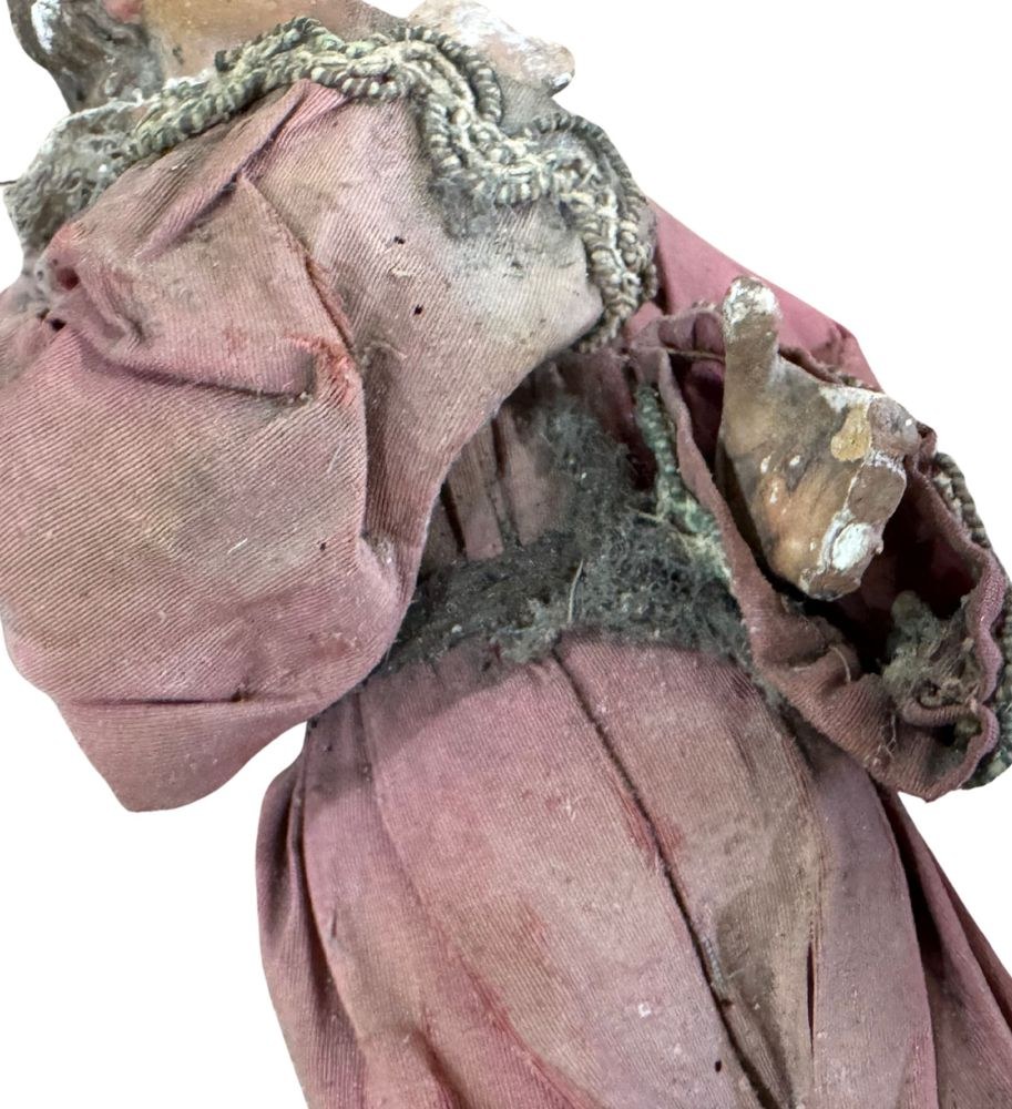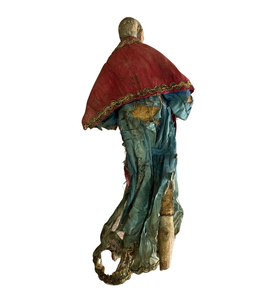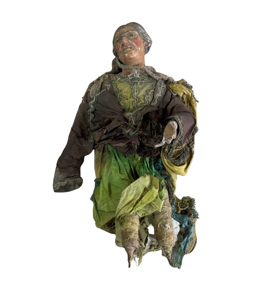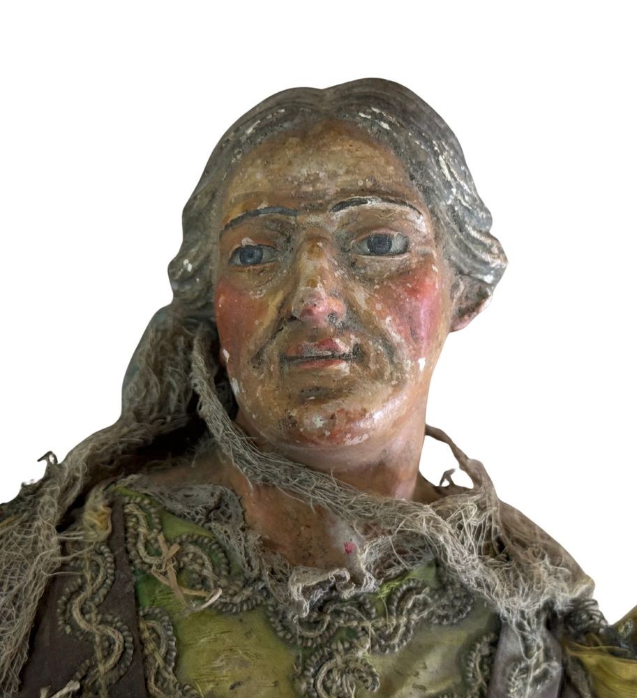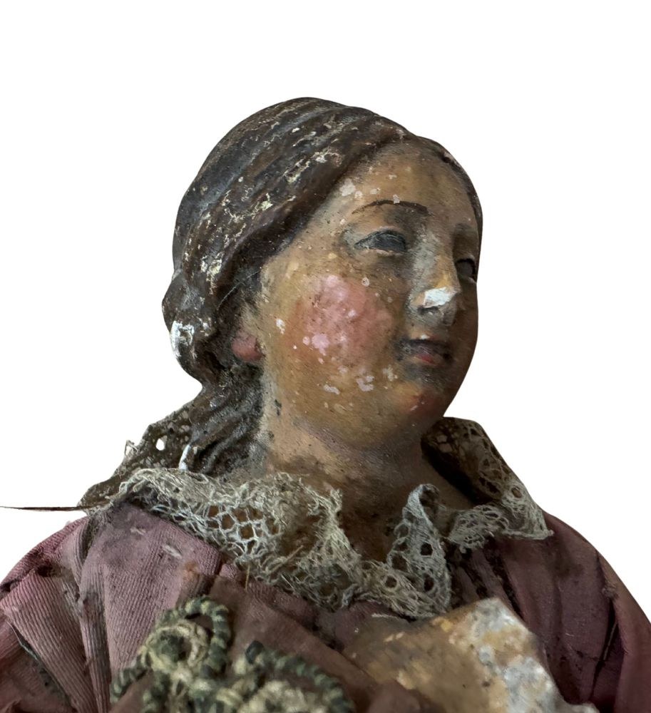 Lot of three Neapolitan nativity sculptures, 19th century period. Dimensions of two pieces: H38 cm. Dimensions of one piece: H27 cm. Requires restoration. Defects and missing parts present.