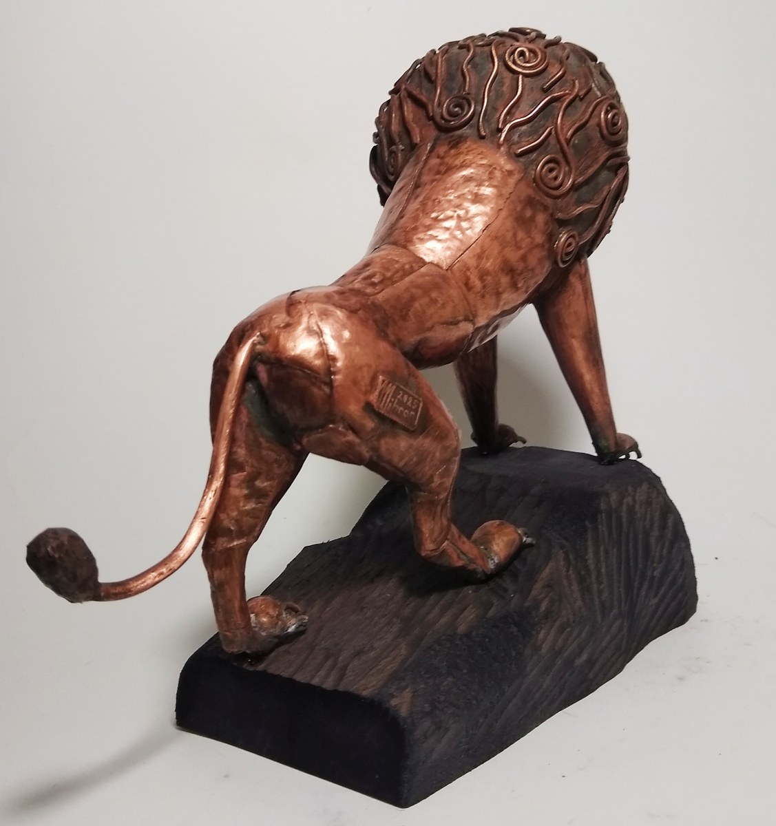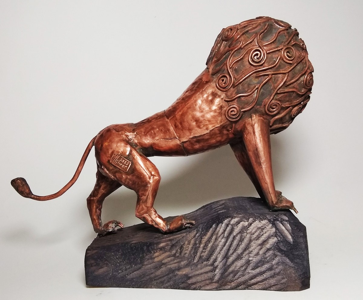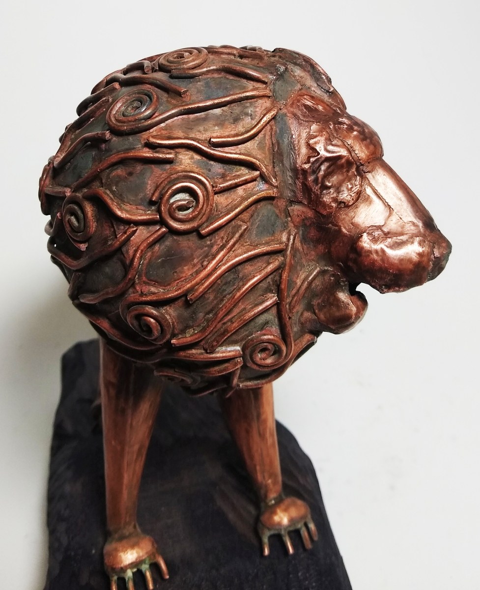 miedź, drewno, ok. 22 x 28 x 12 cm, sygn. na rzeźbie: Mihran 2025