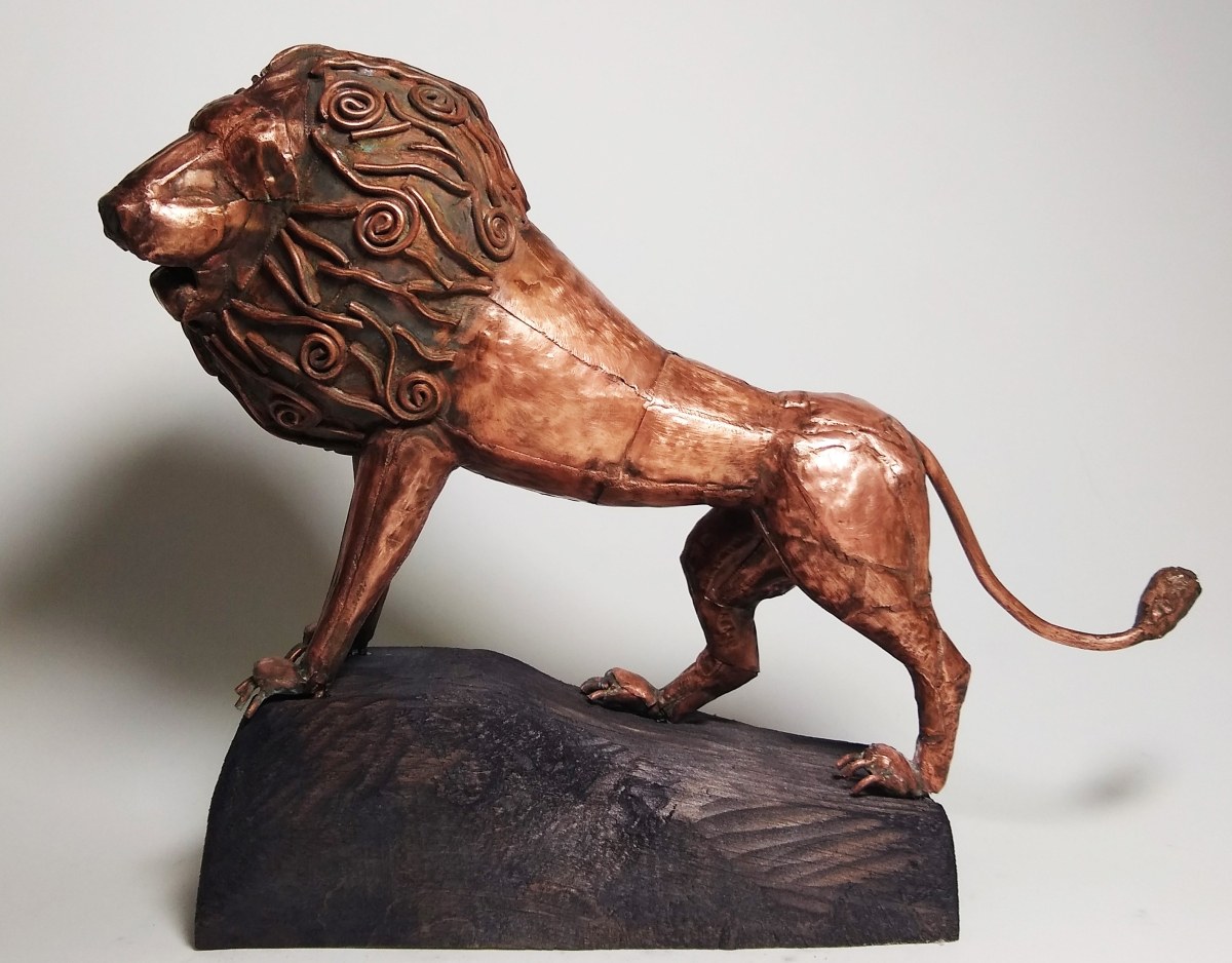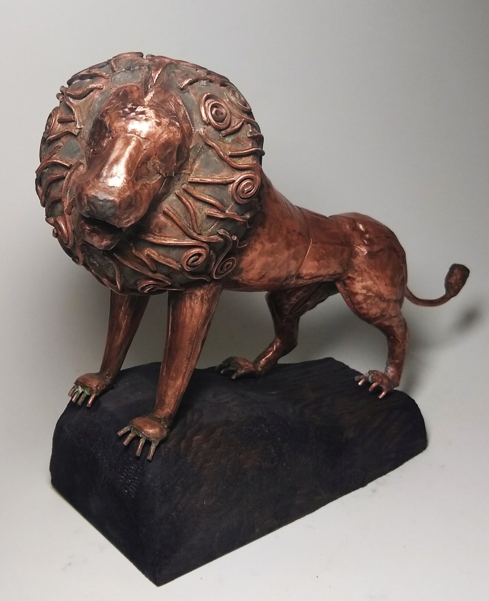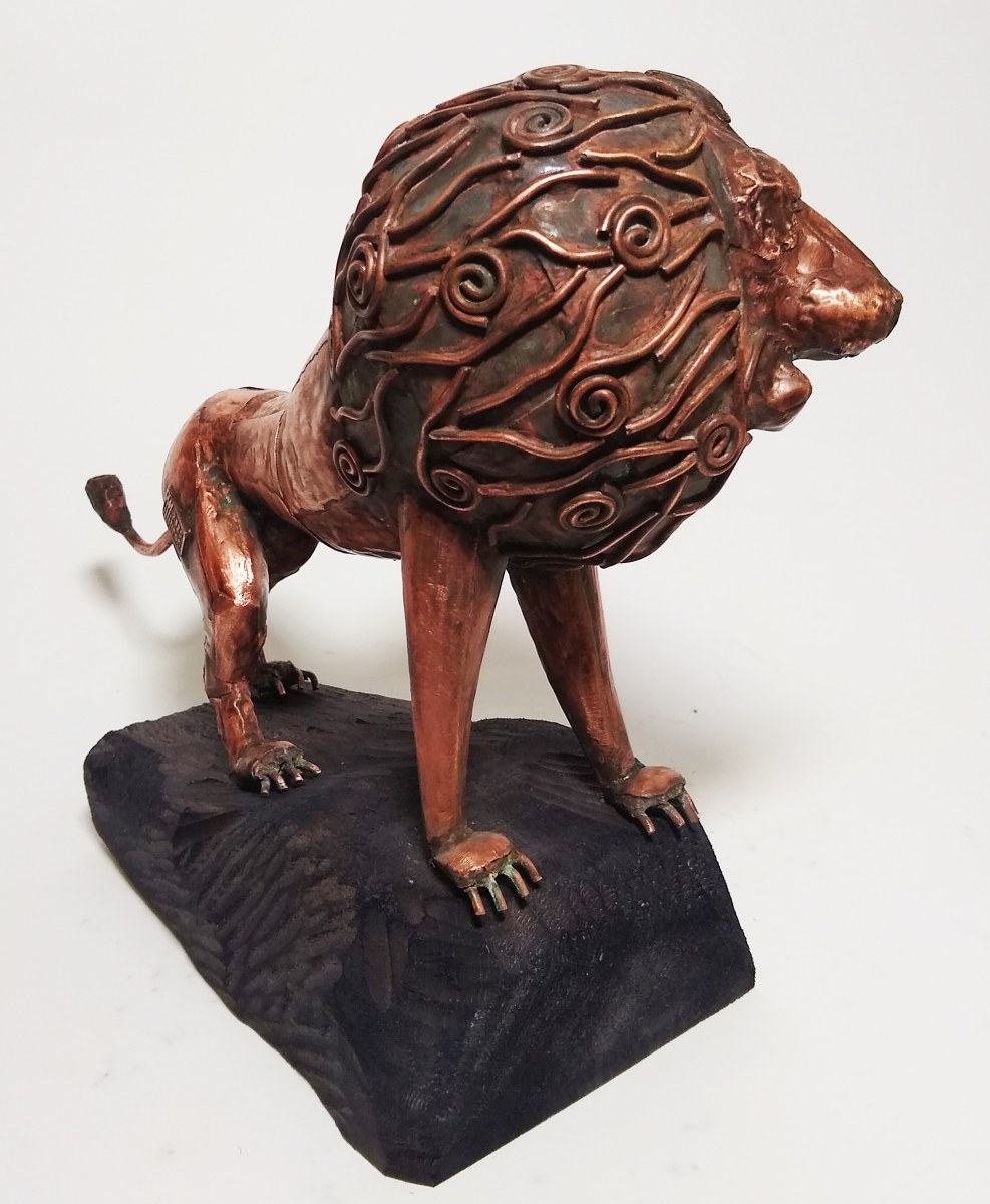 miedź, drewno, ok. 22 x 28 x 12 cm, sygn. na rzeźbie: Mihran 2025
