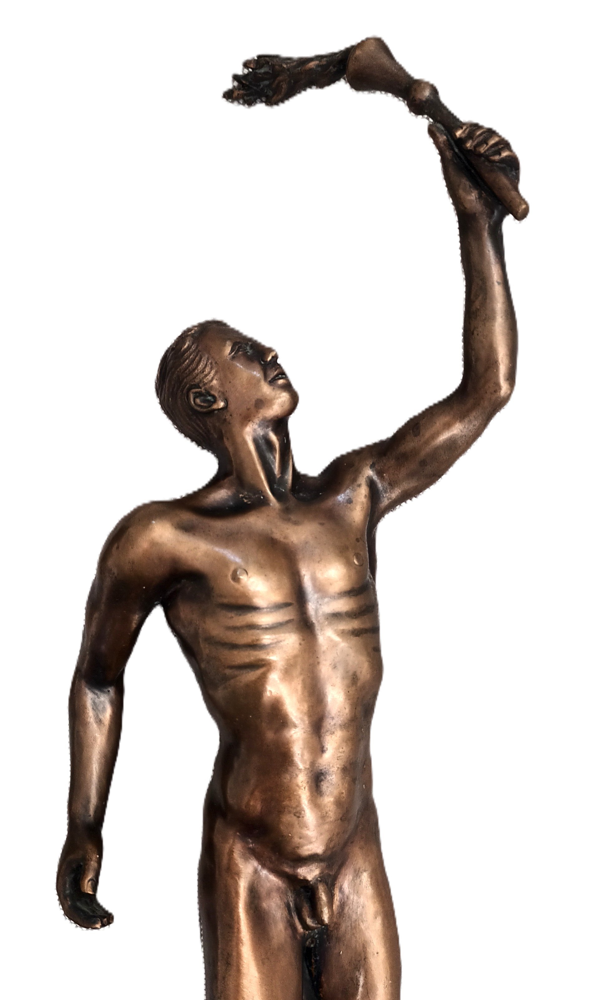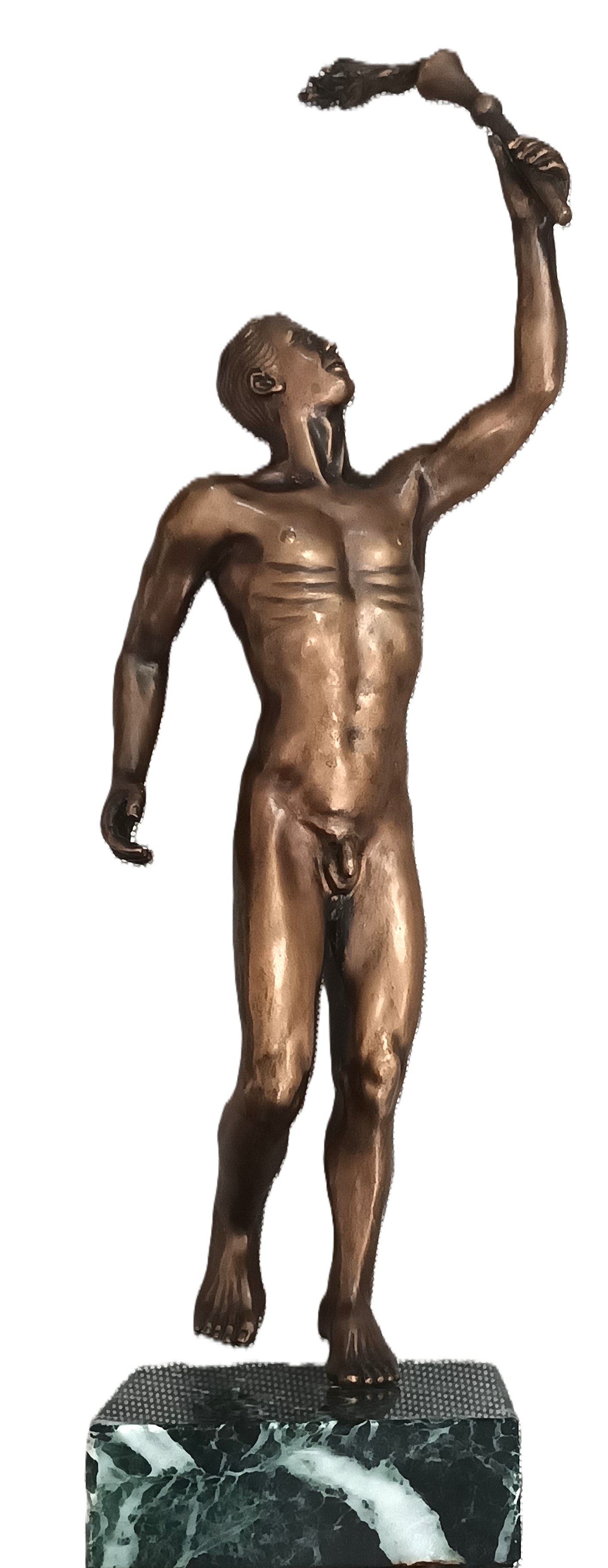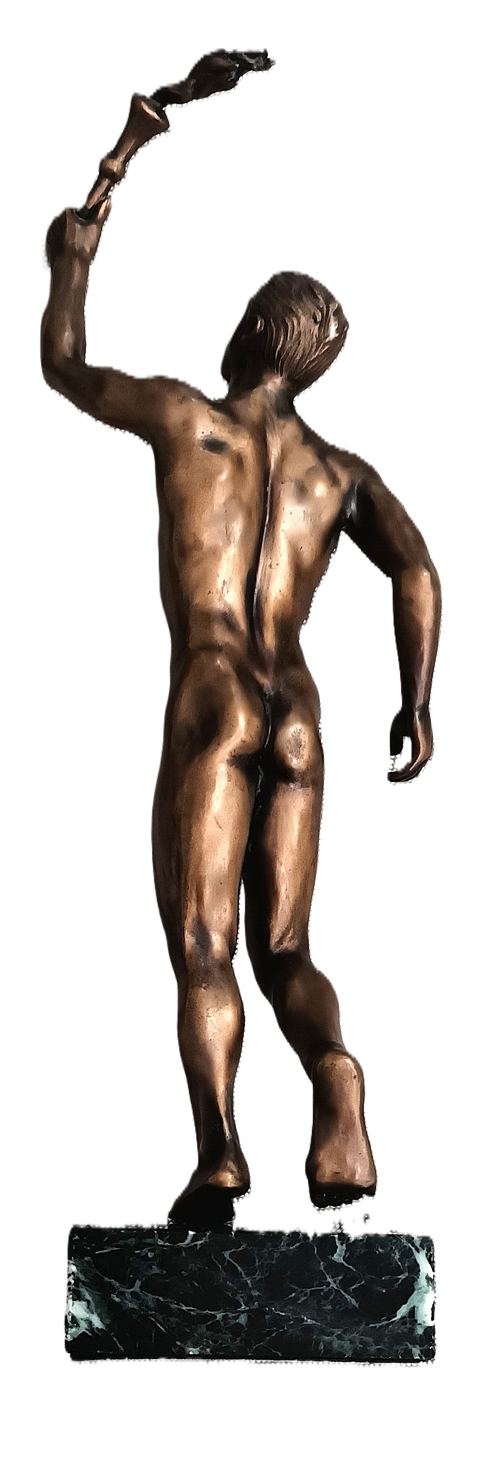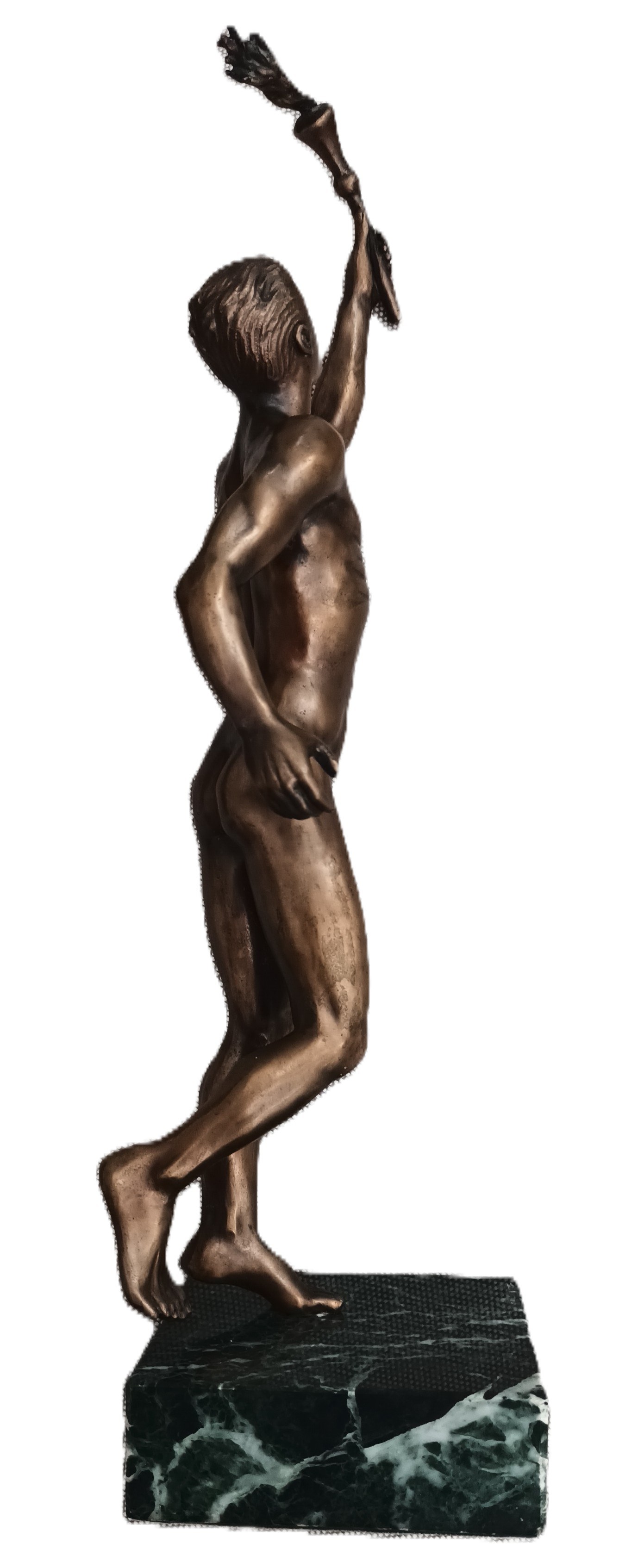 Mosiądz, wysokość całkowita 34 cm, postument zielony granit 9 x 9 x3 cm.