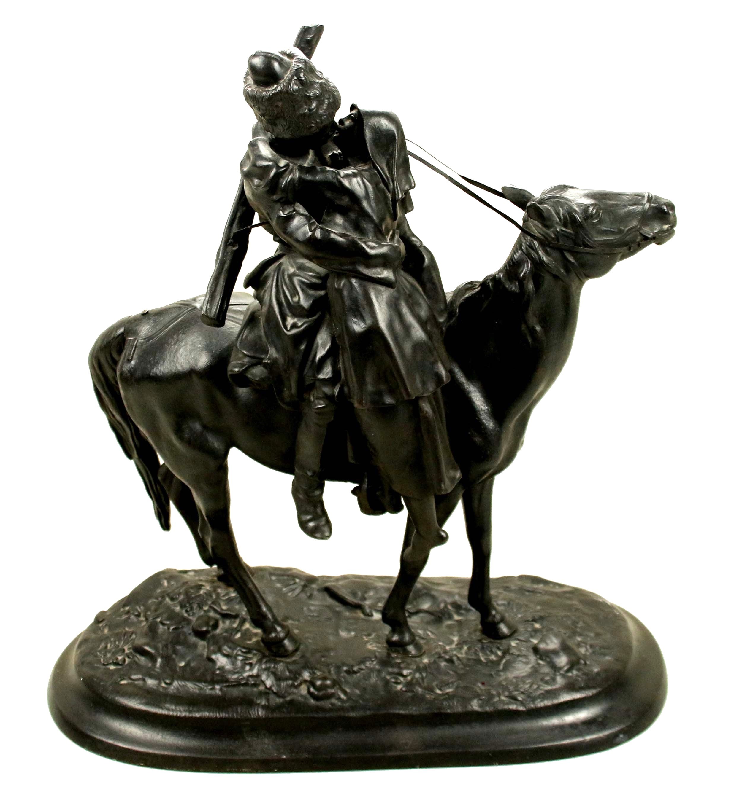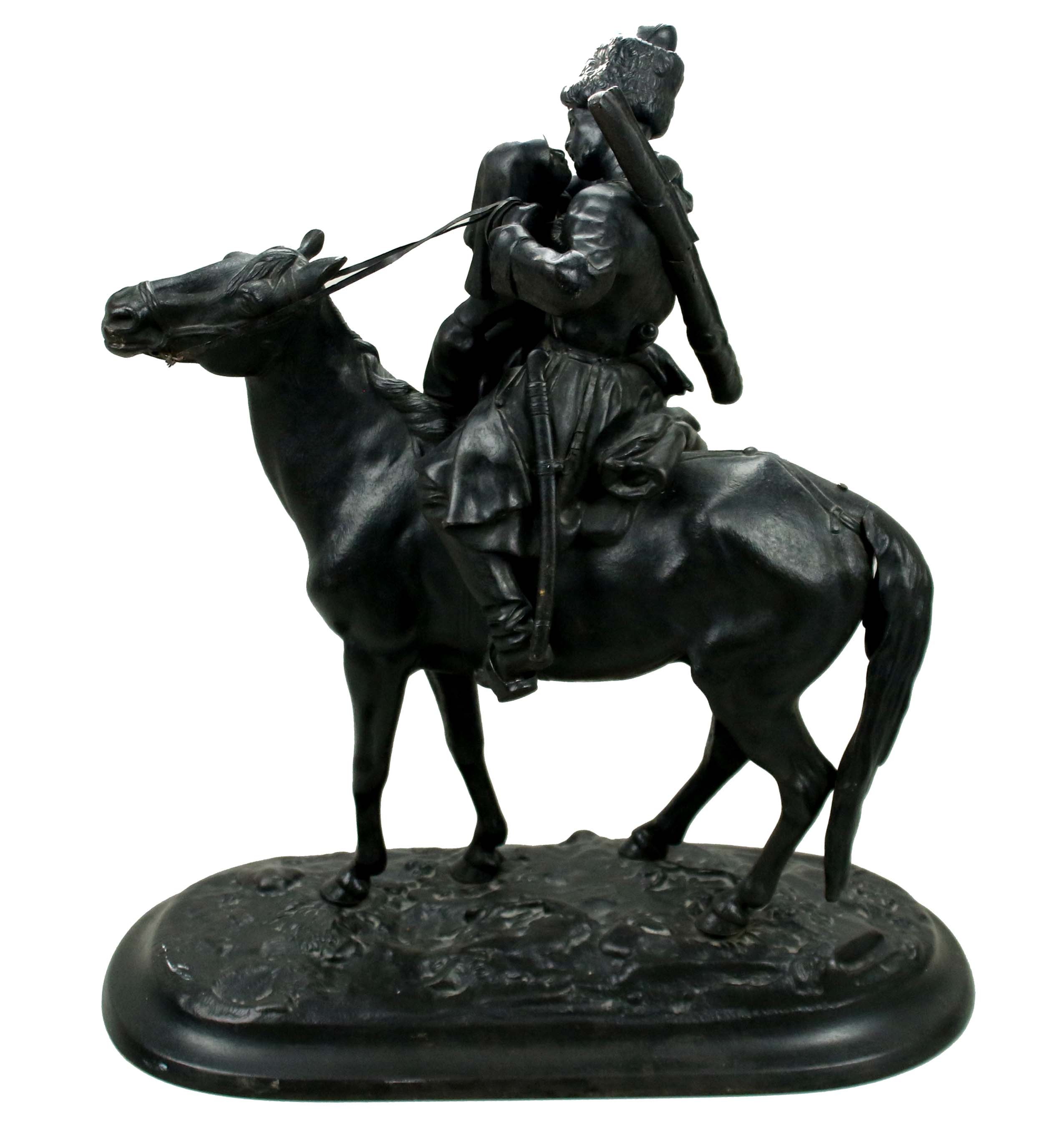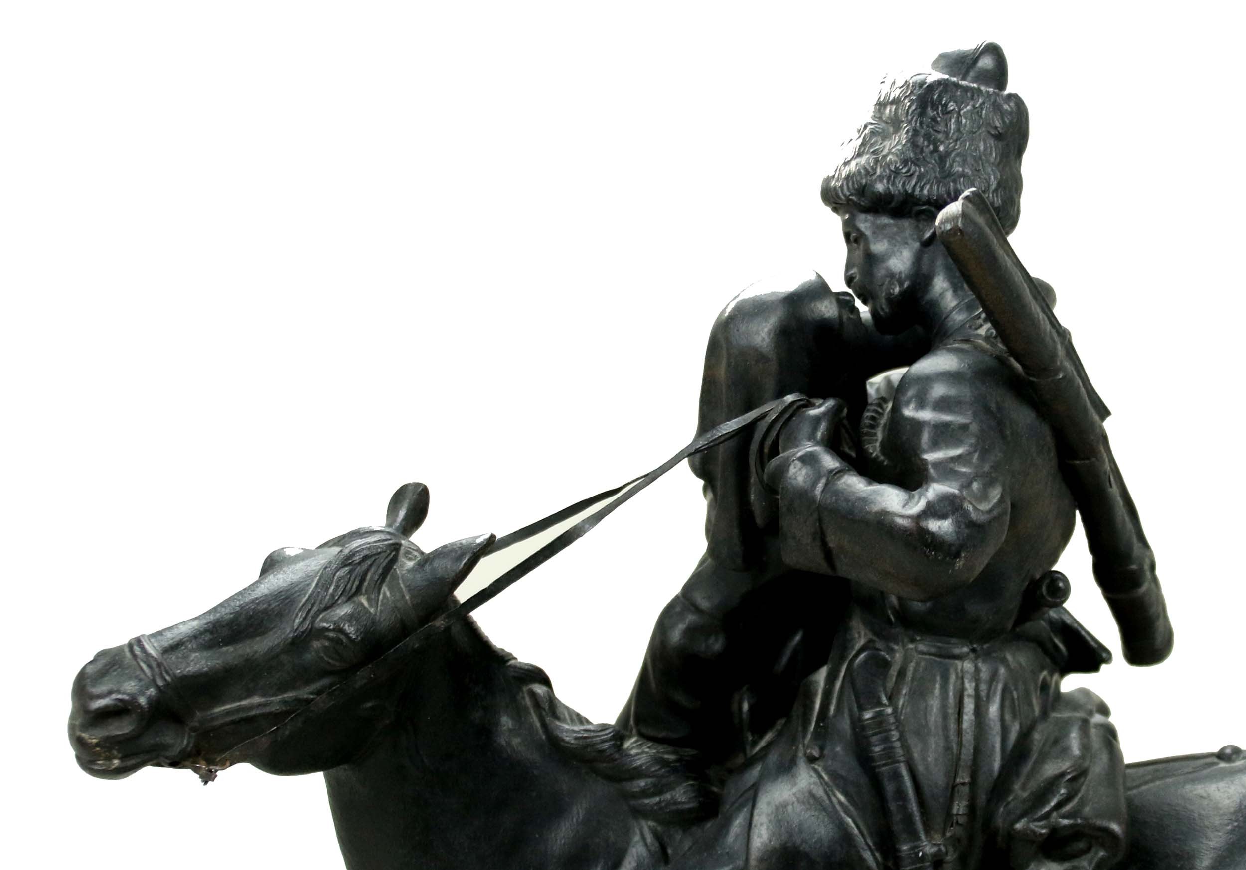 „Rozstanie - Kozak i dziewczyna” KASLI - odlewnia żeliwa. Sygnowana od spodu. Żeliwo, wym. 39 x 34 cm, wym. podstawy 39 x 17 cm.