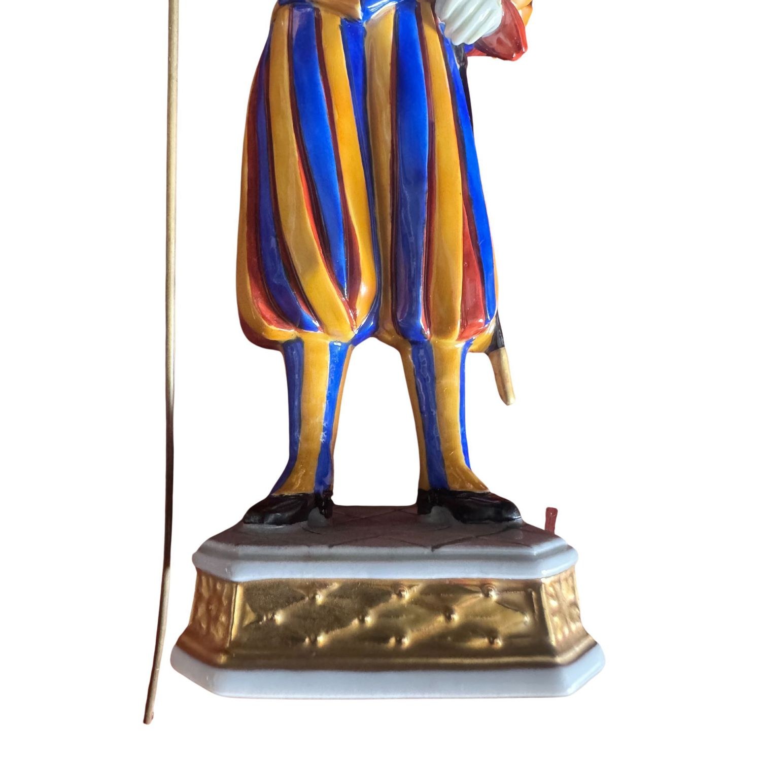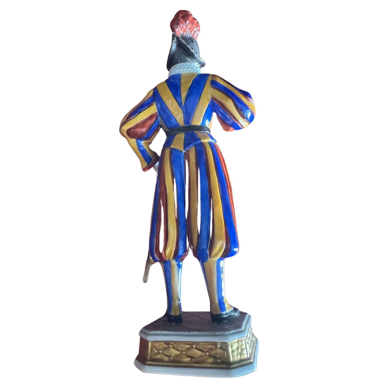 Glazed and hand-decorated ceramic figurine, 20th-century period, depicting a Swiss Guard.