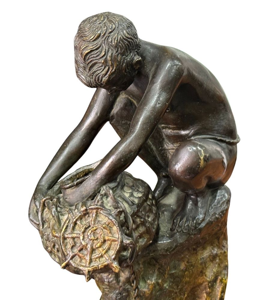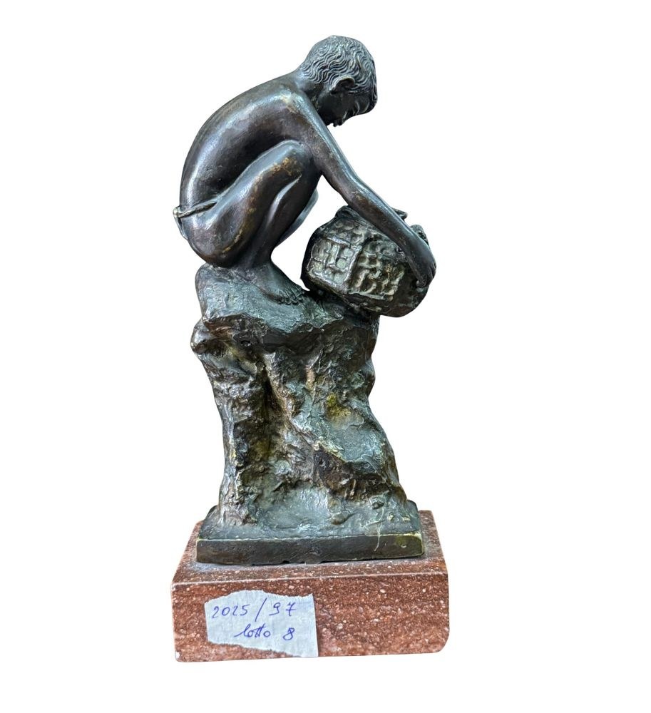 Lost-wax bronze statuette, Italian school, depicting The Young Fisherman. After the model by Achille D’Orsi. Dimensions: h30x13x8 cm. Work in good condition.