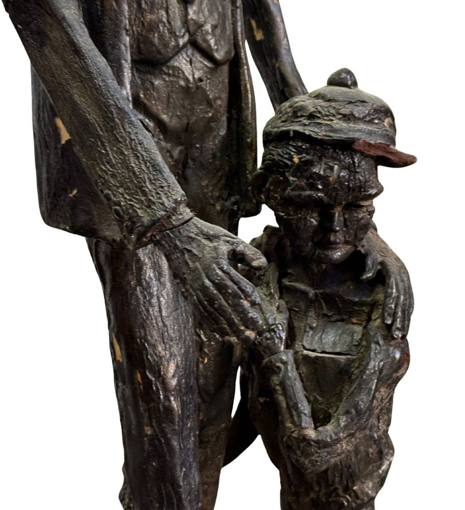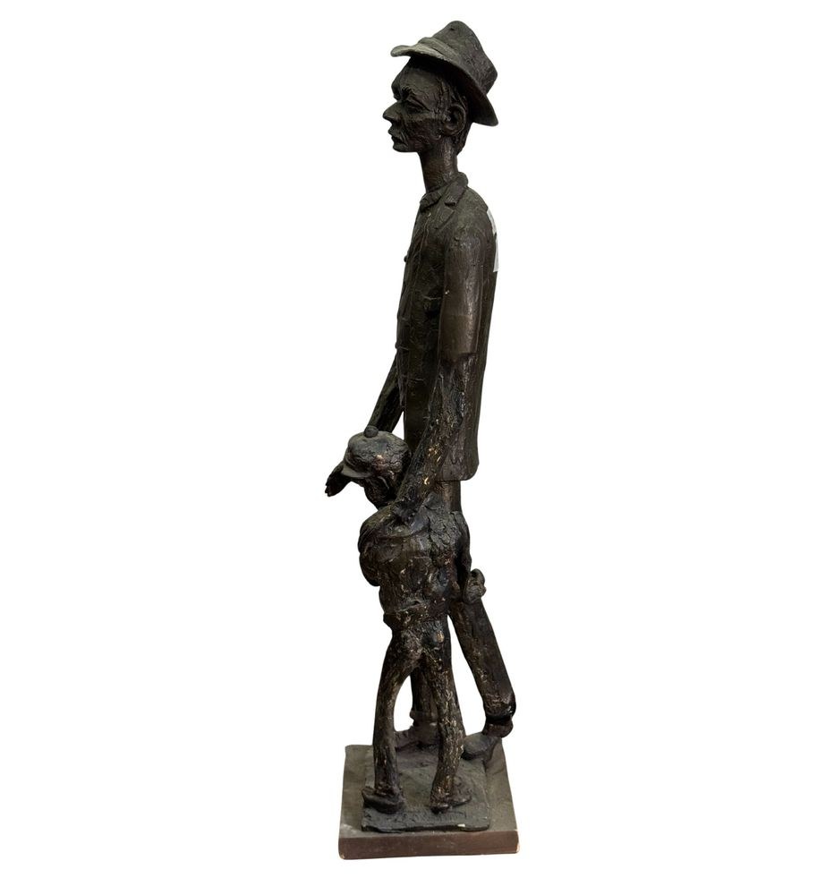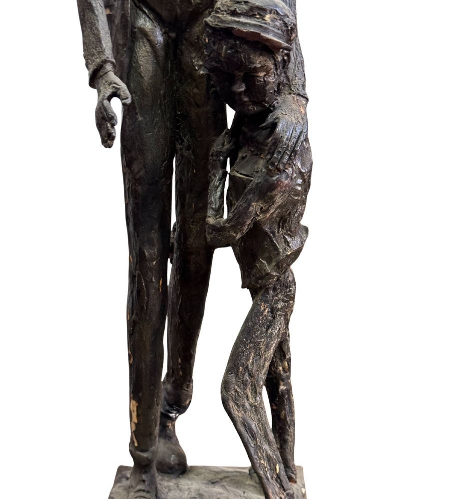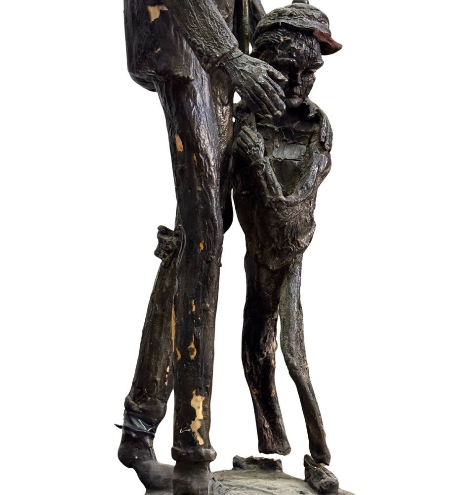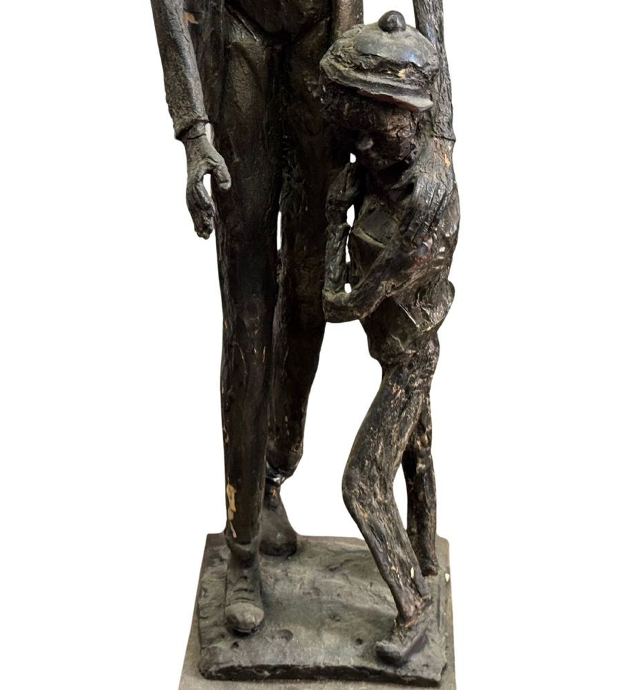 Polychrome wooden sculpture, 20th century, depicting two figures. Dimensions: h78 x 16 x 19 cm. By an anonymous artist. The piece is in good condition with slight signs of aging, as shown in the attached photos.