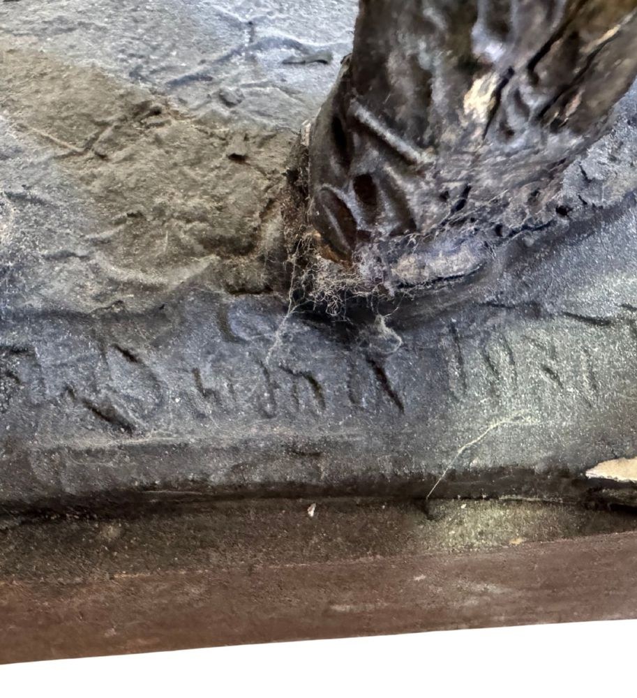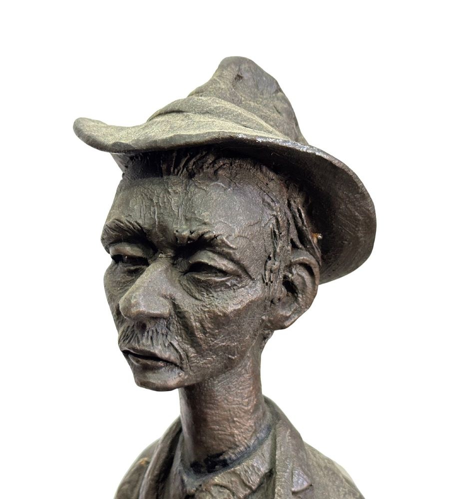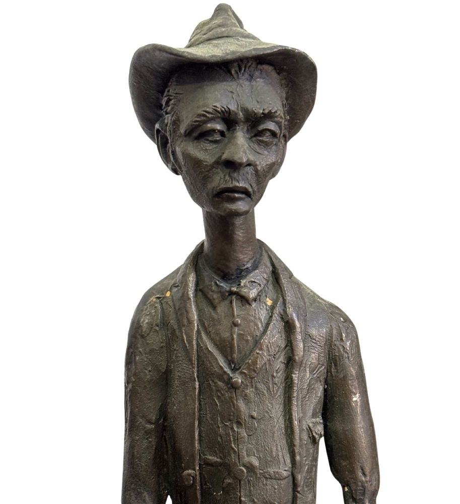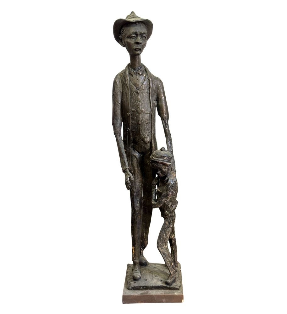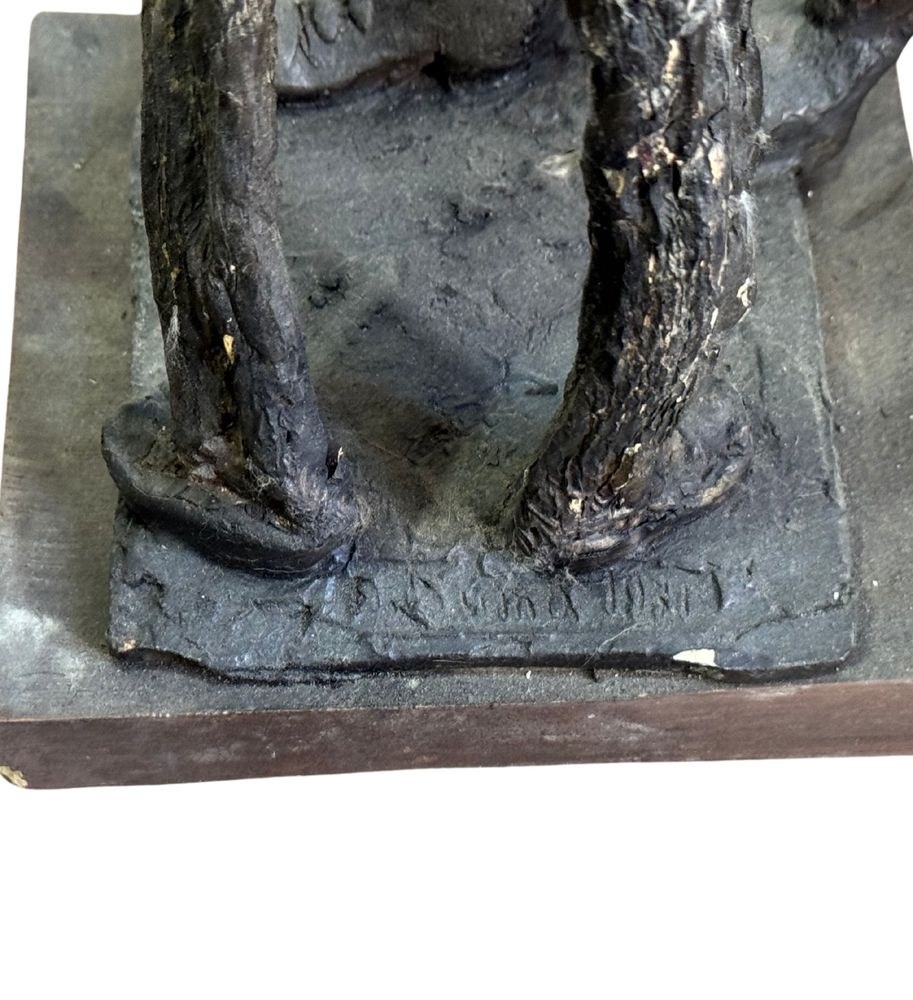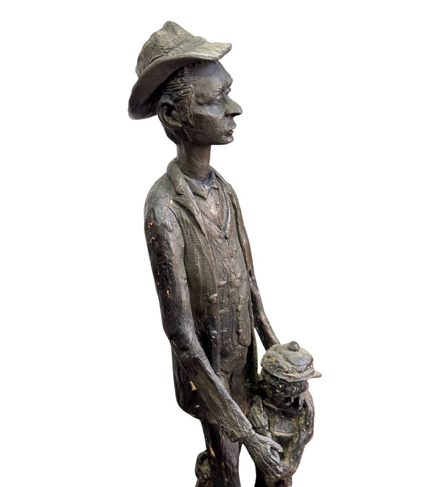 Polychrome wooden sculpture, 20th century, depicting two figures. Dimensions: h78 x 16 x 19 cm. By an anonymous artist. The piece is in good condition with slight signs of aging, as shown in the attached photos.
