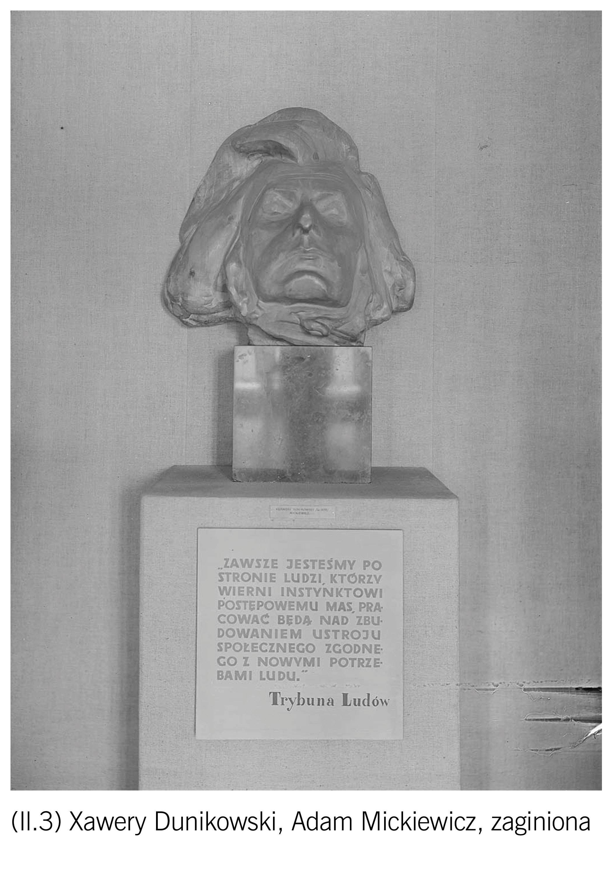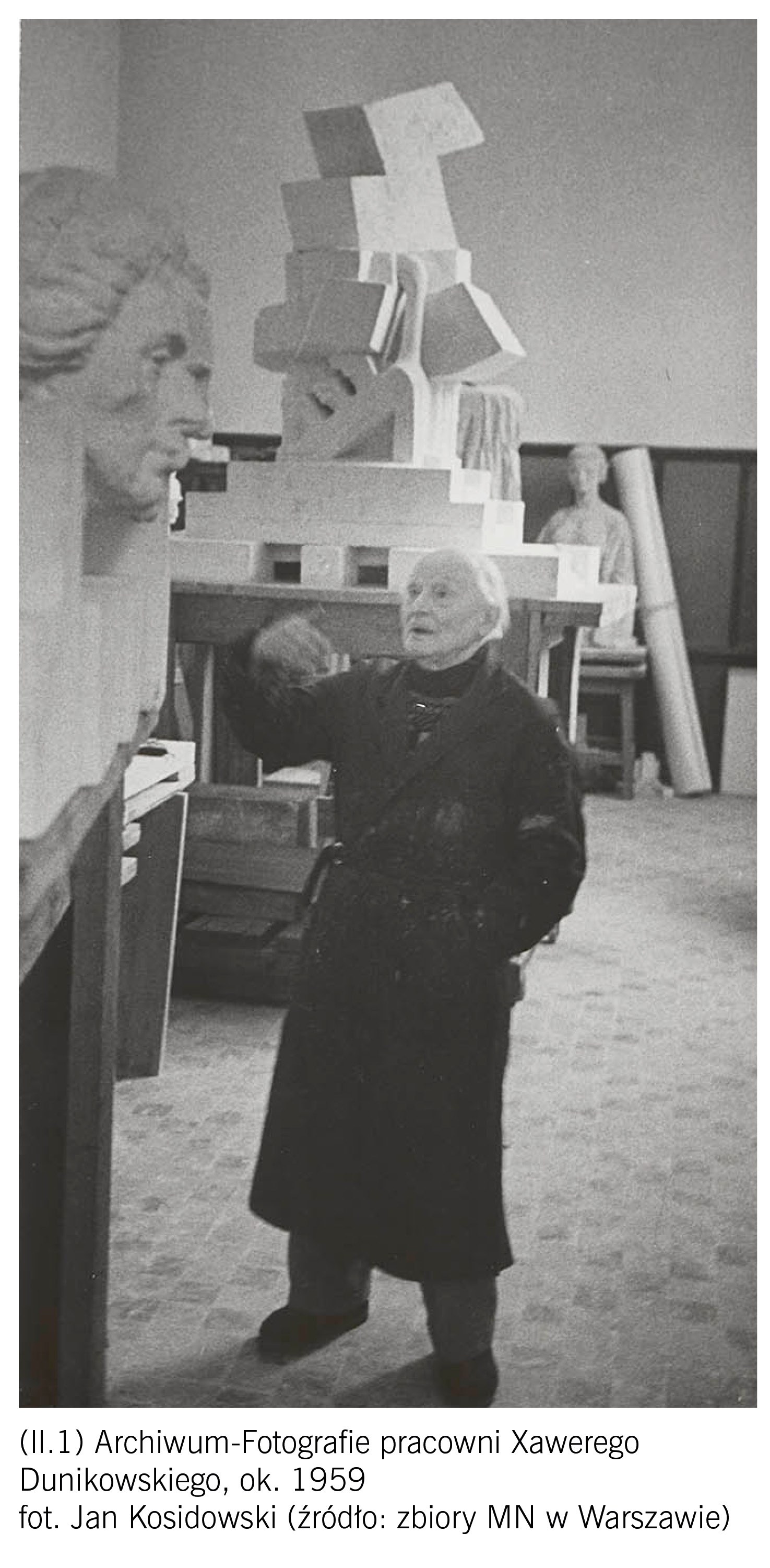 (Il.1) Archiwum-Fotografie pracowni Xawerego Dunikowskiego, ok. 1959 Kosidowski, Jan Źródło zdjęcia: zbiory MN w Warszawie (IL.2.) Xawery Dunikowski. Rzeźby z lat 1898–1963 (oraz dokumentacja fotograficzna Zygmunta Szarguta) Termin wystawy: 18.07–10.09.1971 Miejsce wydarzenia: Muzeum Sztuki w Łodzi (Muzeum Sztuki w Łodzi, ul. Więckowskiego 36), Fot. Zygmunt Szargut Źródło zdjęcia: Muzeum Sztuki w Łodzi, Zasoby https://zasoby.msl.org.pl/mobjects/view/127 [dostęp: 31.07.2024] (IL.3) Xawery Dunikowski, Adam Mickiewicz, zaginiona; Źródło zdjęcia: Zbiory MN w Krakowie (IL.4) „Portret Henryka Szczyglińskiego” (ok. 1898) technika odlewnicza, brąz, 100 cm x 65 cm x 34 cm Źródło zdjęcia: zbiory MN w Krakowie (IL.5) Xawery Dunikowski, Pomnik Czynu Powstańczego, 1946–1955, Góra św. Anny; granit. Fot. Jerzy Kosałka Źródło zdjęcia: Karolina Tomczak, „Pomnik Czynu Powstańczego Xawerego Dunikowskiego z lat 1946–1955 – artystyczna interpretacja historii Ziem Zachodnich wobec komunistycznej władzy”, Warszawa 2016, str. 89) (Il. 6) Xawery Dunikowski, motyw rzeźbiarski Pomnika Czynu Powstańczego: Głowa śląska, 1949, Góra św. Anny; granit. Fot. Karolina Tomczak Źródło zdjęcia: Karolina Tomczak, „Pomnik Czynu Powstańczego Xawerego Dunikowskiego z lat 1946–1955 – artystyczna interpretacja historii Ziem Zachodnich wobec komunistycznej władzy”, Warszawa 2016, str. 94)