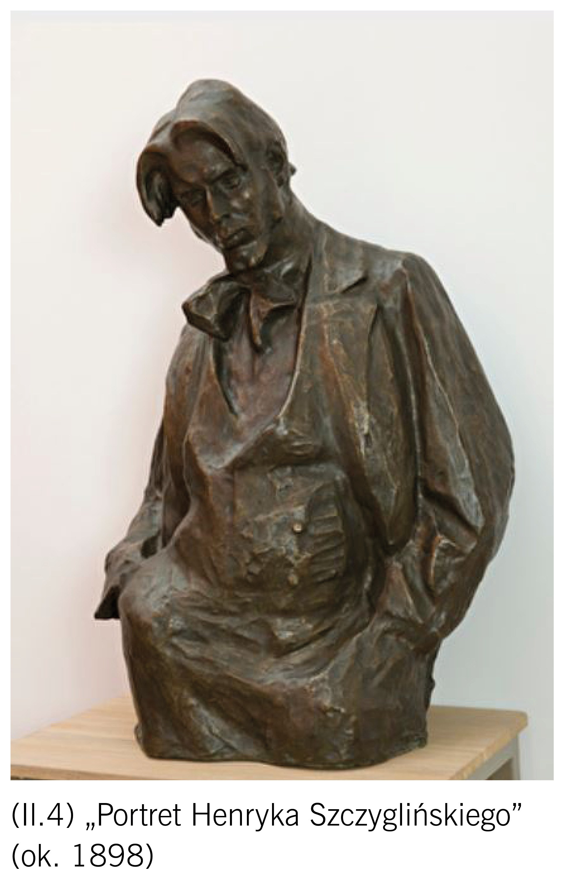 W pracach Xawerego Dunikowskiego pojawiają się rzeźby przedstawiające głowy. Dostrzec to można na archiwalnych zdjęciach pokazujących samego artystę (il.1), lub z wystawy jego dzieł (il.2). Pomnik „Adama Mickiewicza”( ok.1899-1906) (il.3) to wyrzeźbiony w drewnie lipowym wizerunek literata wykonany we wczesnych latach twórczości Xawerego Dunikowskiego. Prawdopodobnie w tym okresie została wykonana, prezentowana „Głowa” oraz „Portret Henryka Szczyglińskiego” z około 1898 r. (Il.4)