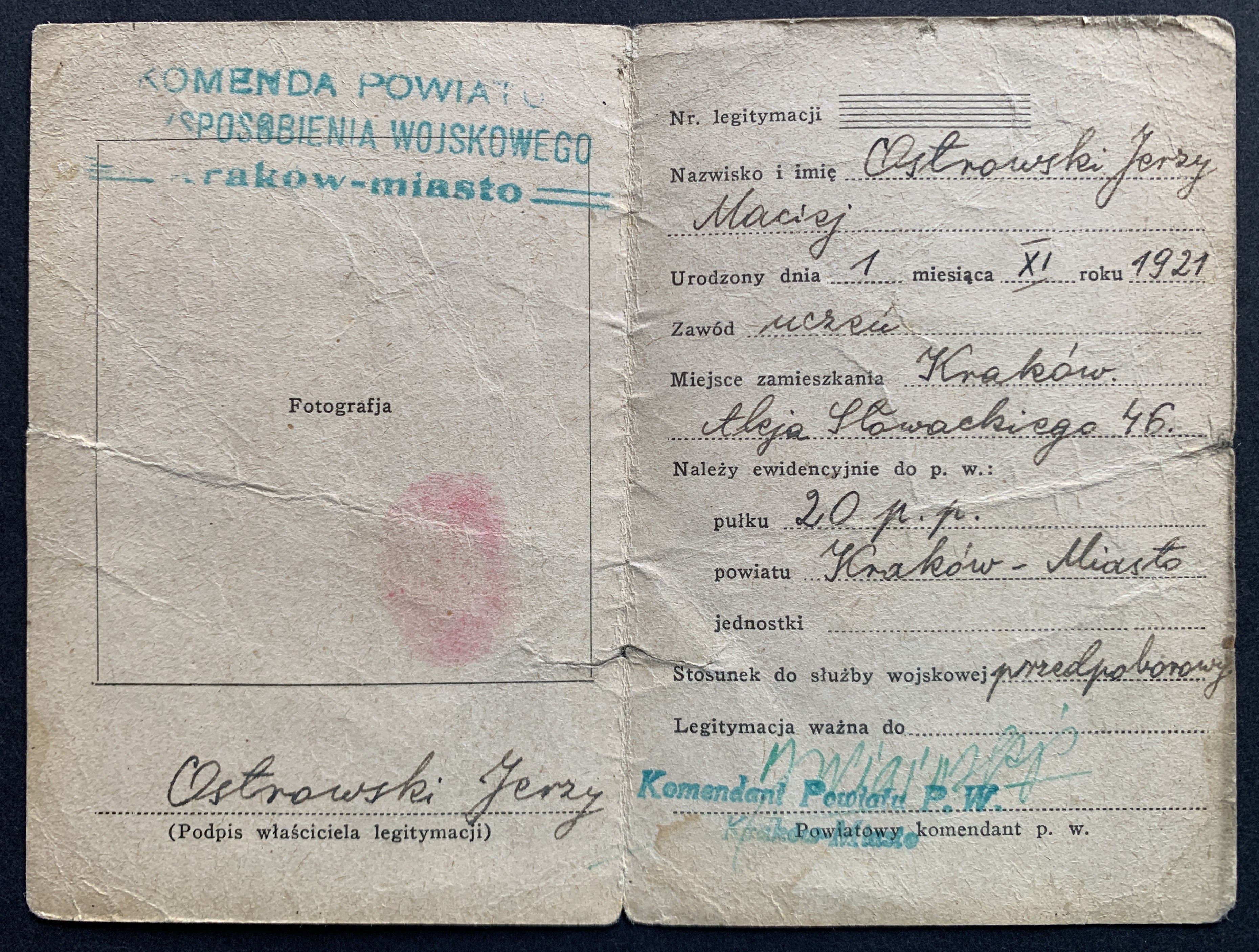 [Wojsko] LEGITYMACJA - PRZYSPOSOBIENIE OBRONNE. Krakwów [przed 1939]