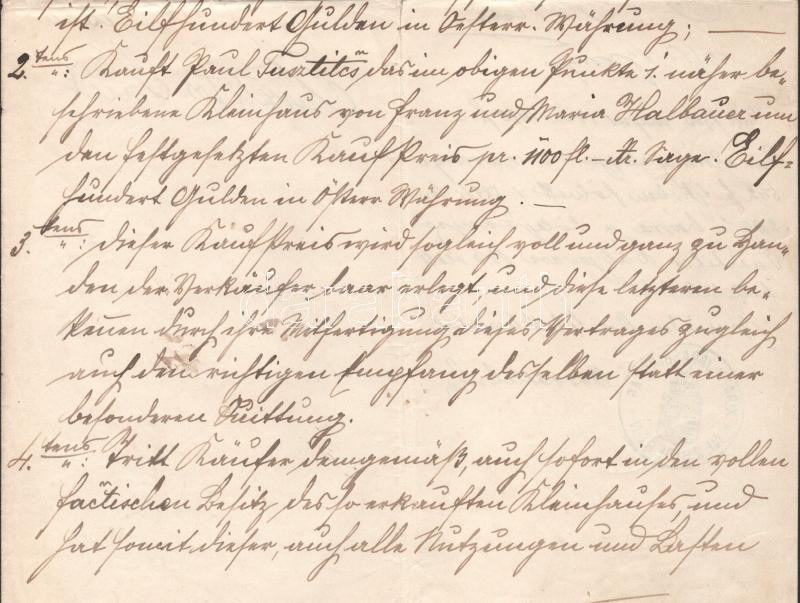 1899 Zurány, ( Zurndorf, Burgenland, A) adásvételi szerződés házra, 1K illetékbélyeggel Tustitcs Pár javára / Contract for house