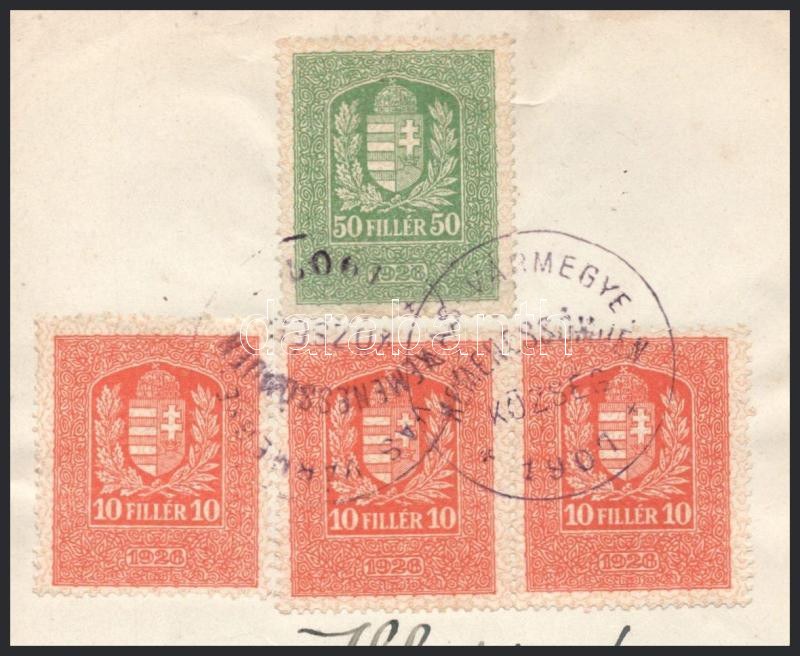 1907 Illetőségi bizonyítvány 3 x 10f + 50f illetékbélyeggel "KEMENESSÖMJÉN"