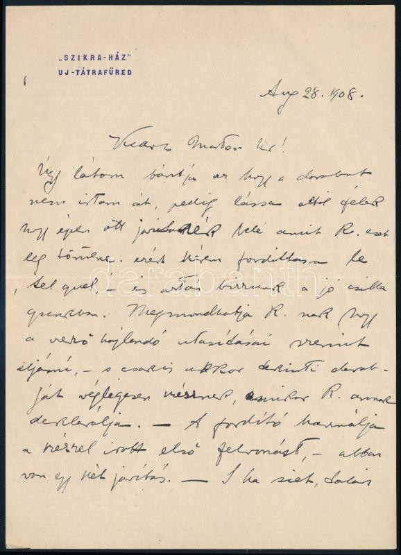 1908 Gróf Teleki Sándorné - Kende Júila "Szikra" író, feminista (1864-1937) autográf levele 4 beírt oldalon