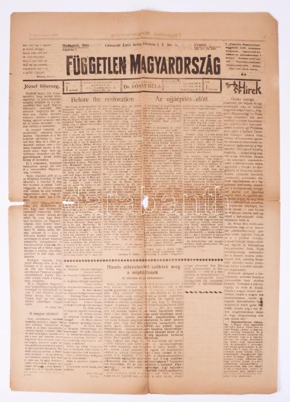 1919 Bp., A Független Magyarország XIX. évfolyamának 74. száma, román cenzúrával