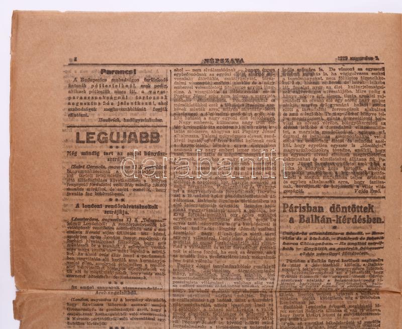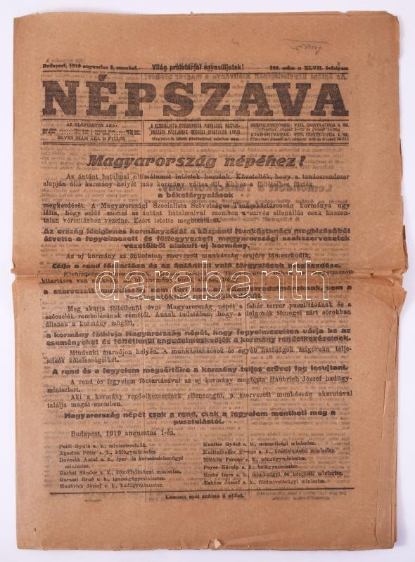 1919 Bp., A Népszava XLVII. évfolyamának 183. száma...