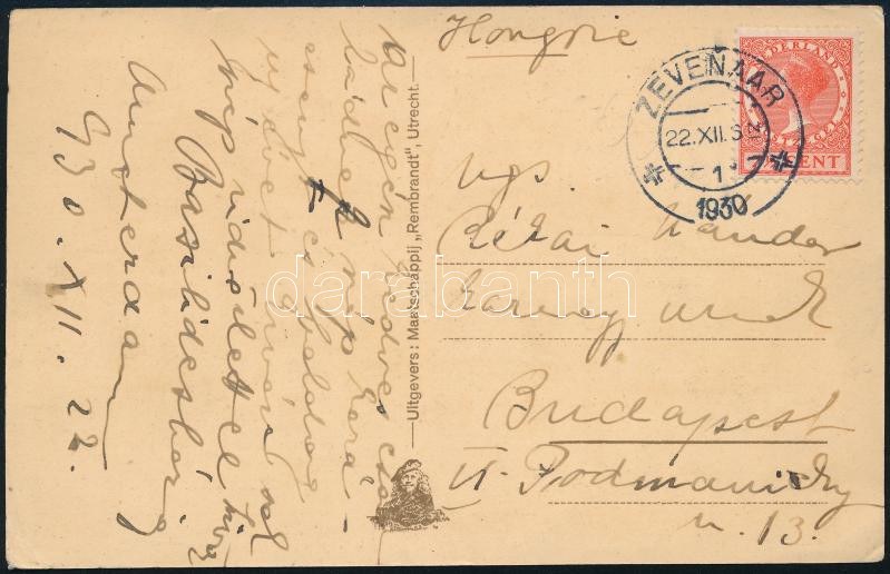 1930 Zevenaar (Hollandia), Basilides Mária (1886-1946) opera-énekesnő saját kezűleg megírt képeslapja, Rékai Nándor (1870-1943) karmester, zeneszerző részére címezve és hazaküldve